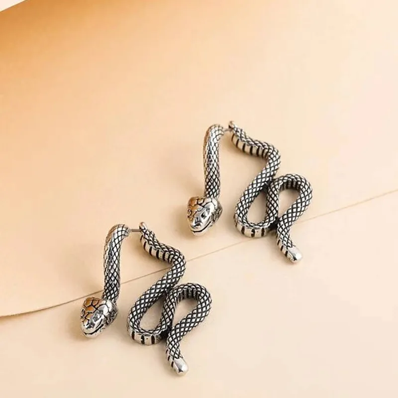 Dark Gothic Snake Stud Earrings – Goth Punk Piercing Jewelry for Men & Women