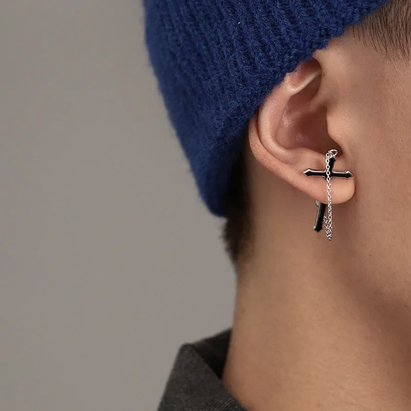 Dark Gothic Sword Earring – Big Cross Ear Piercing Stud for Women & Men