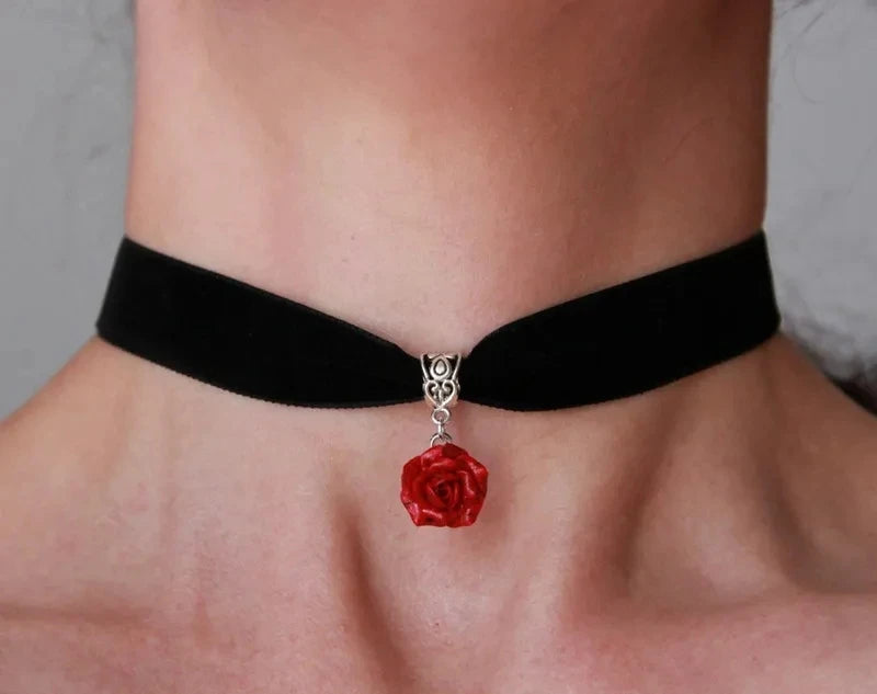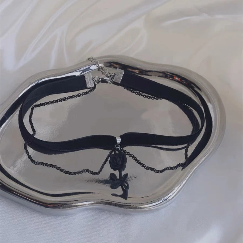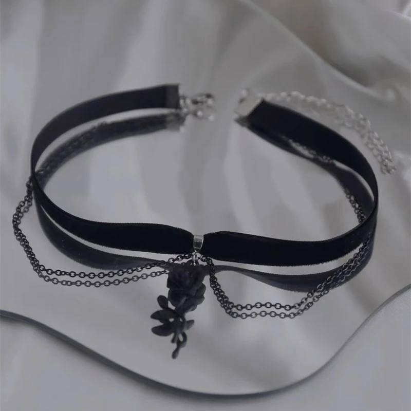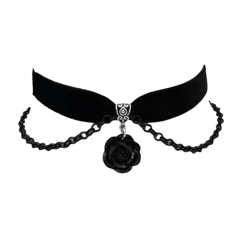 Gothic Black Rose Charm Choker – Elegant Velvet Witchcraft Necklace for Women