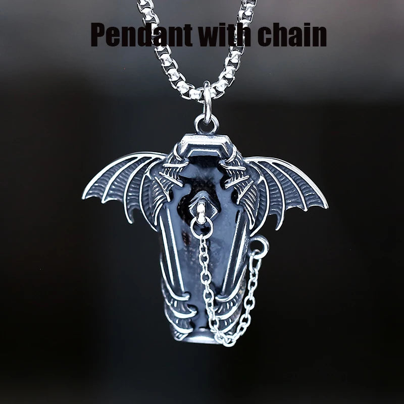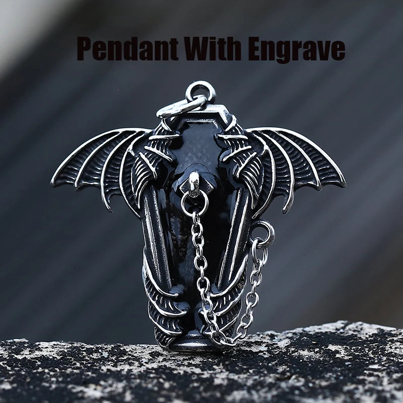 Gothic Coffin with Bat Pendant Necklace – 316L Stainless Steel Punk Biker Jewelry