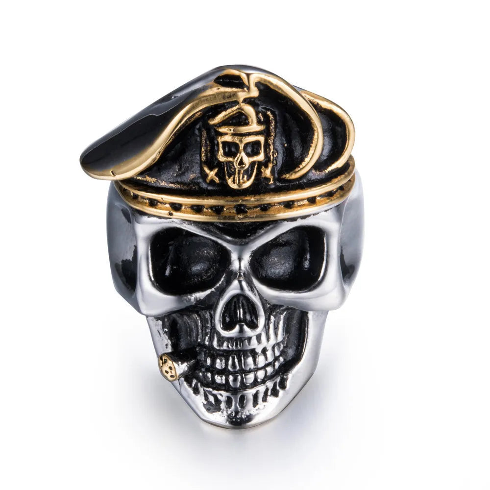 Unleash dark energy with this Gothic Punk Ring for Men, featuring a fierce combination of skeleton, devil, skull, snake, and captain motifs. Designed for bold personalities who live for exaggerated style and underground fashion.