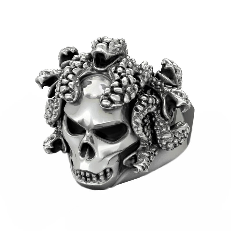 Gothic Punk Devil Skull Ring – Retro Adjustable Skeleton Snake Ring for Men