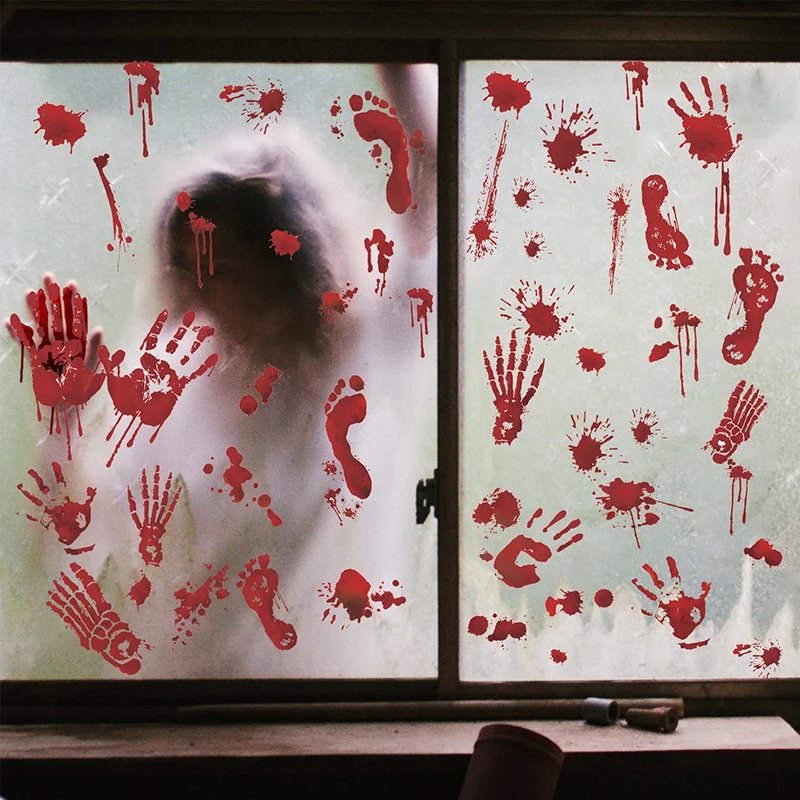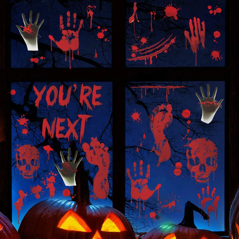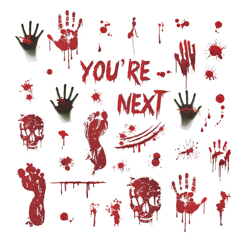 Get ready for Halloween with this terrifying Blood Handprint Skull Wall Sticker — the perfect decoration to spook your space!