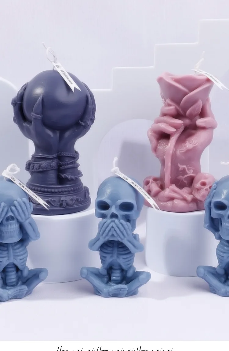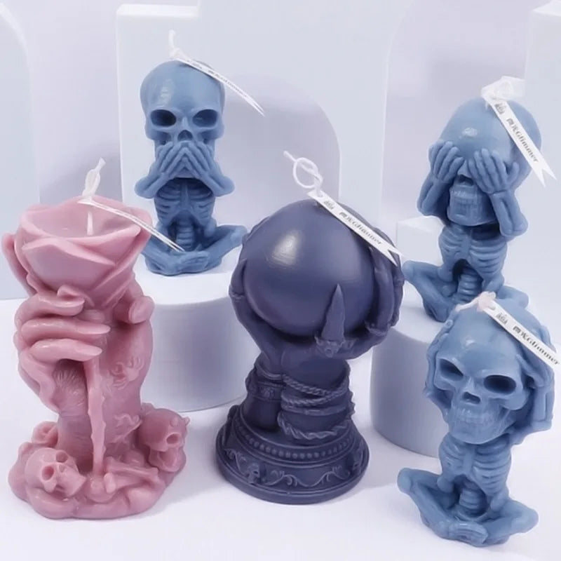 Bring eerie elegance to your Halloween décor with this Skull Design Scented Candle inspired by the “No See, No Speak, No Hear” theme. Perfect as a spooky, horrific decoration or a unique aromatherapy gift.