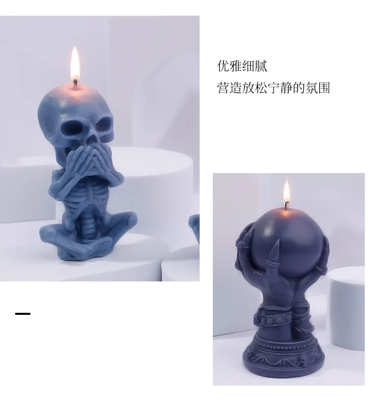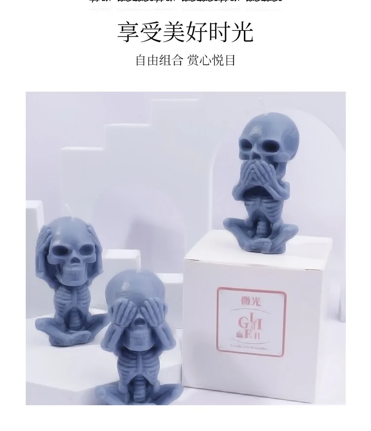 1PC Skull Design Scented Candle – “No See, No Speak, No Hear” Spooky Halloween Aromatherapy Gift