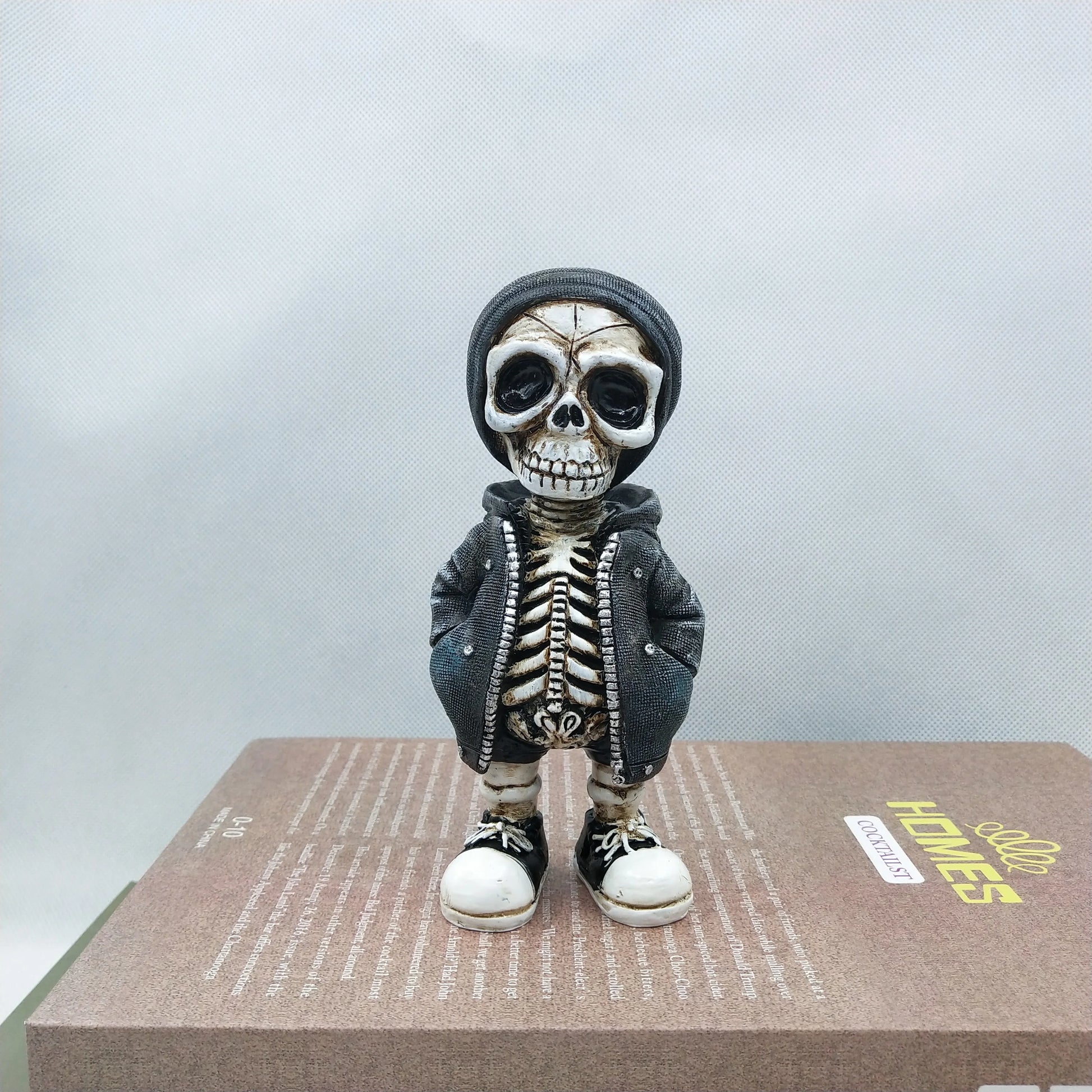 1Pcs Cool Skeleton Figurine – Miniature Skull Resin Sculpture for Halloween Decor