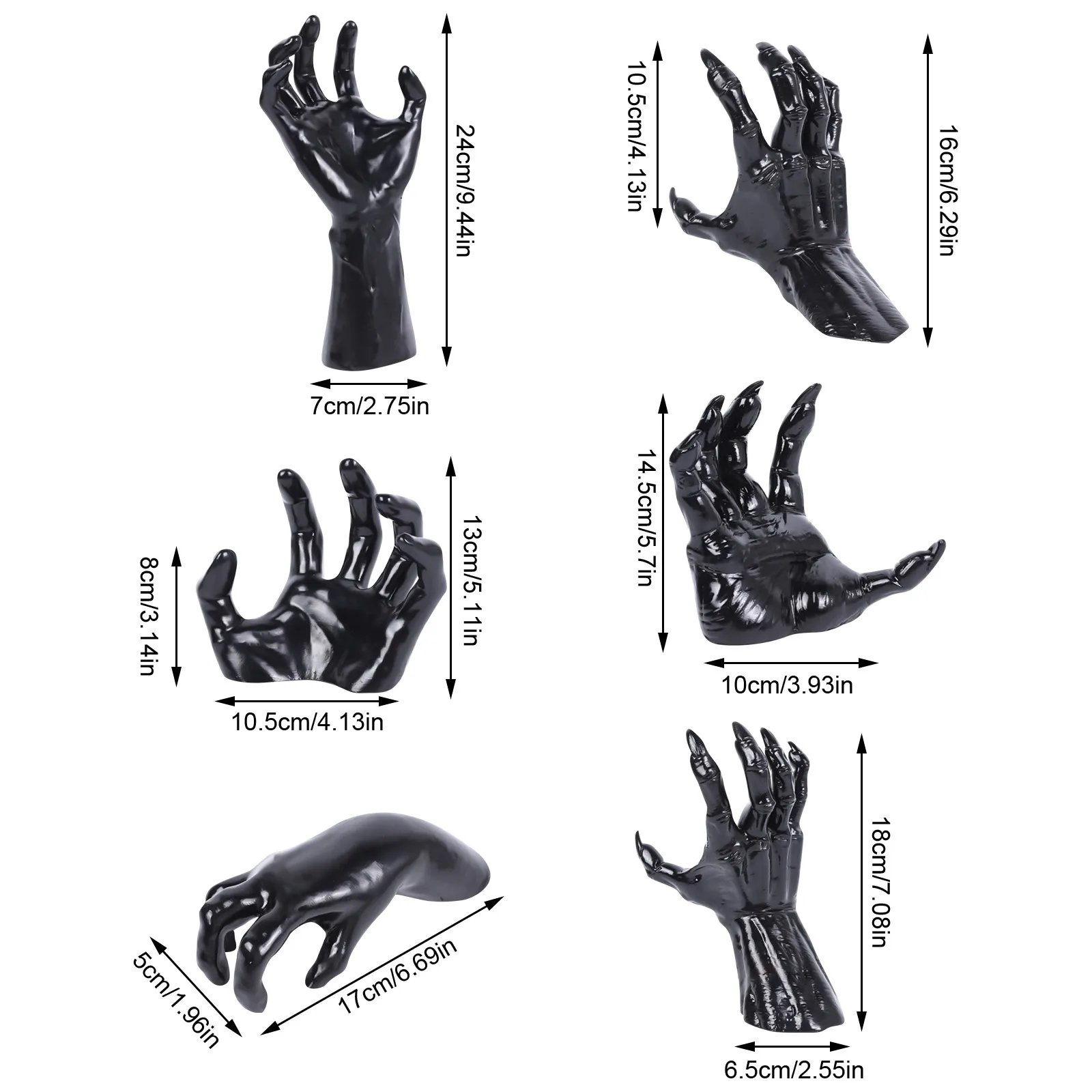 Includes 3 wall-mountable ghost hand sculptures in various spooky poses