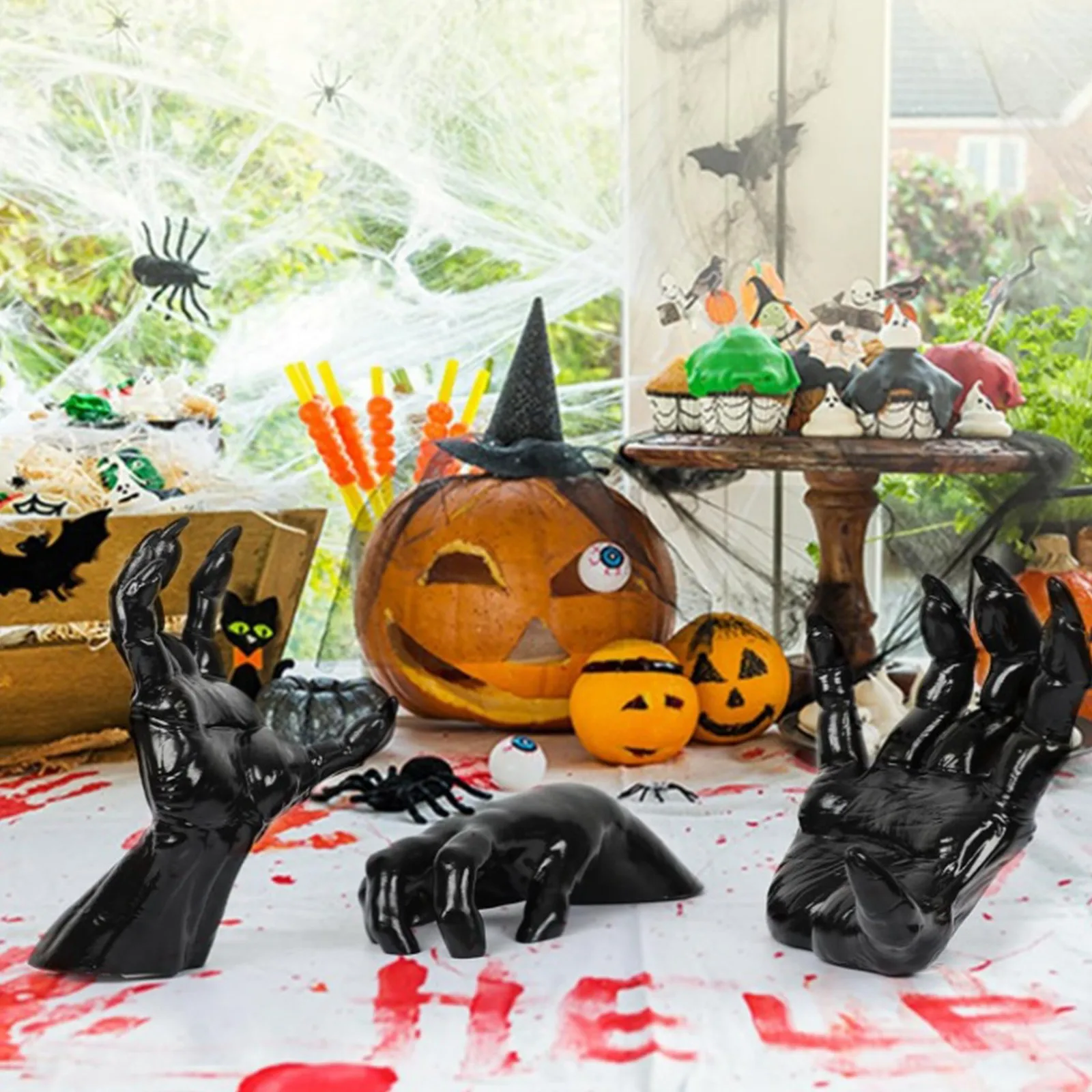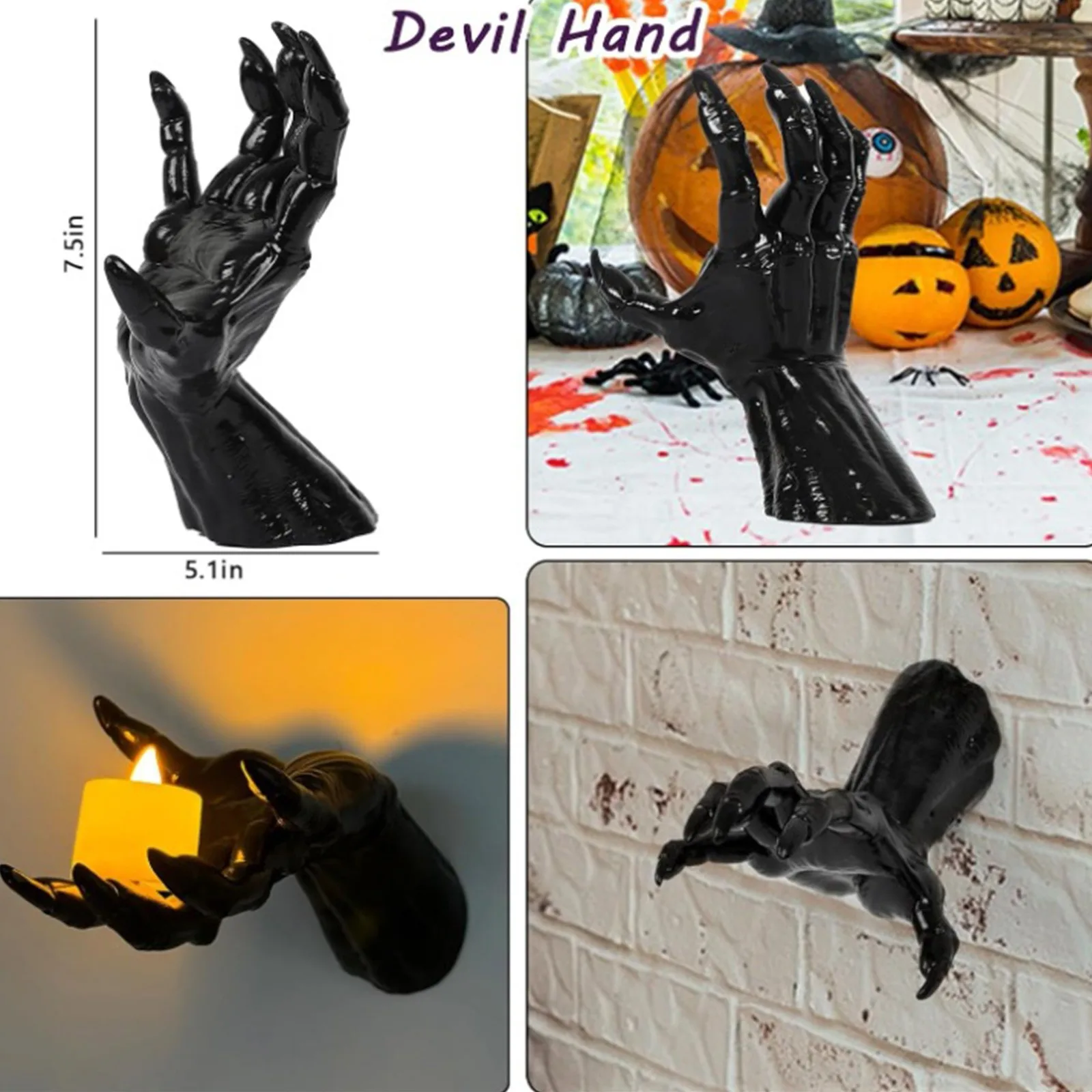Add eerie elegance to your Halloween setup with this 3-piece Creepy Hands Candle Holder Set — featuring ghostly hands that double as wall hooks or spooky shelves for candles and small decor.
