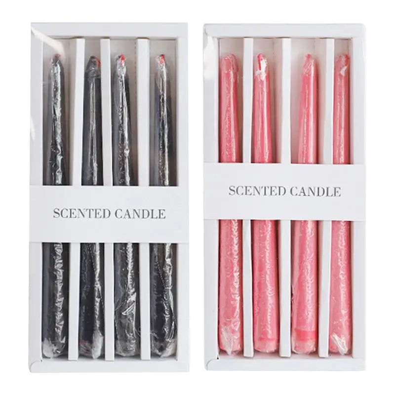 Set of 4 tall black tapered candles, ideal for dramatic spooky displays