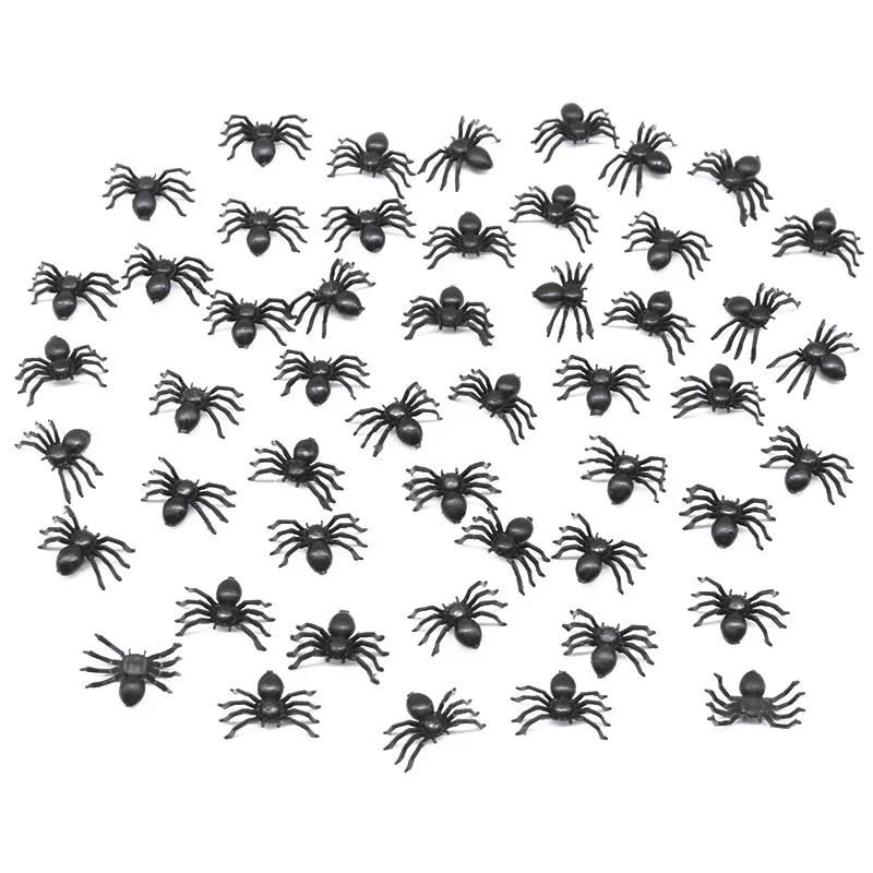 Includes 50 or 100 small black spiders, perfect for spreading creepy vibes