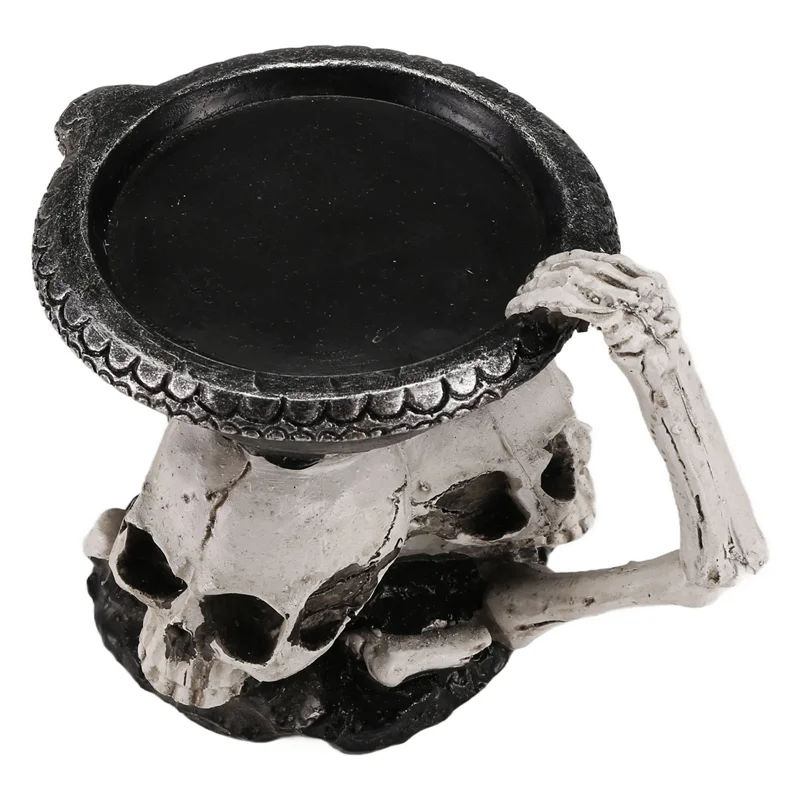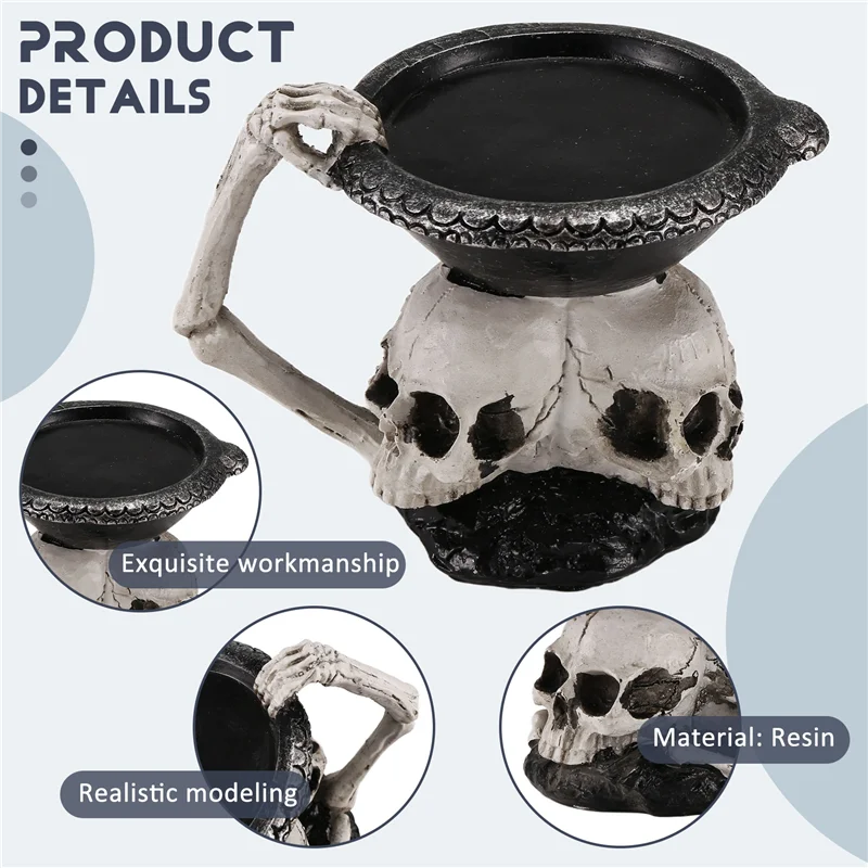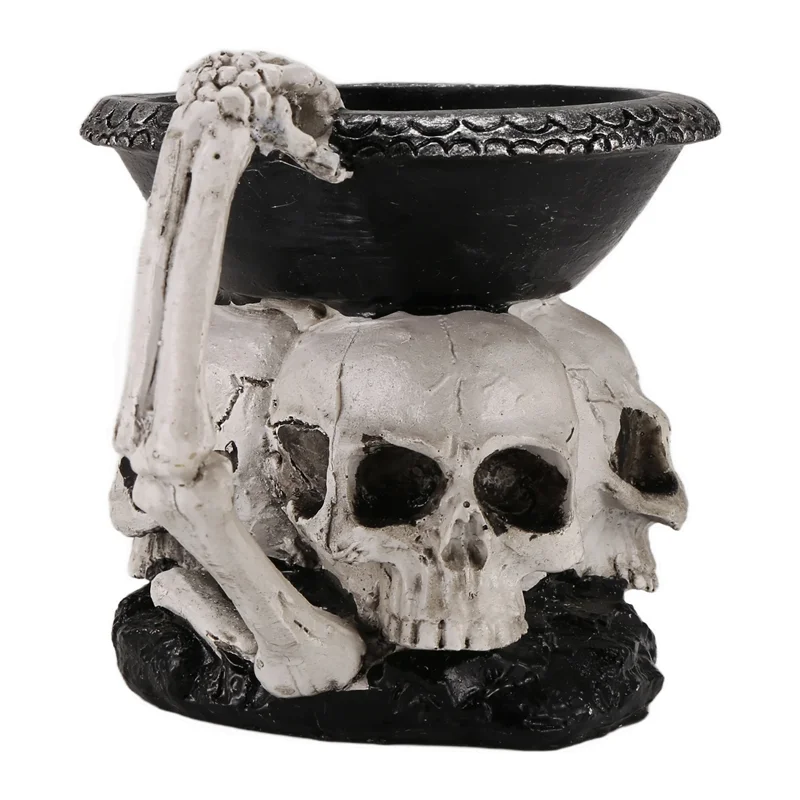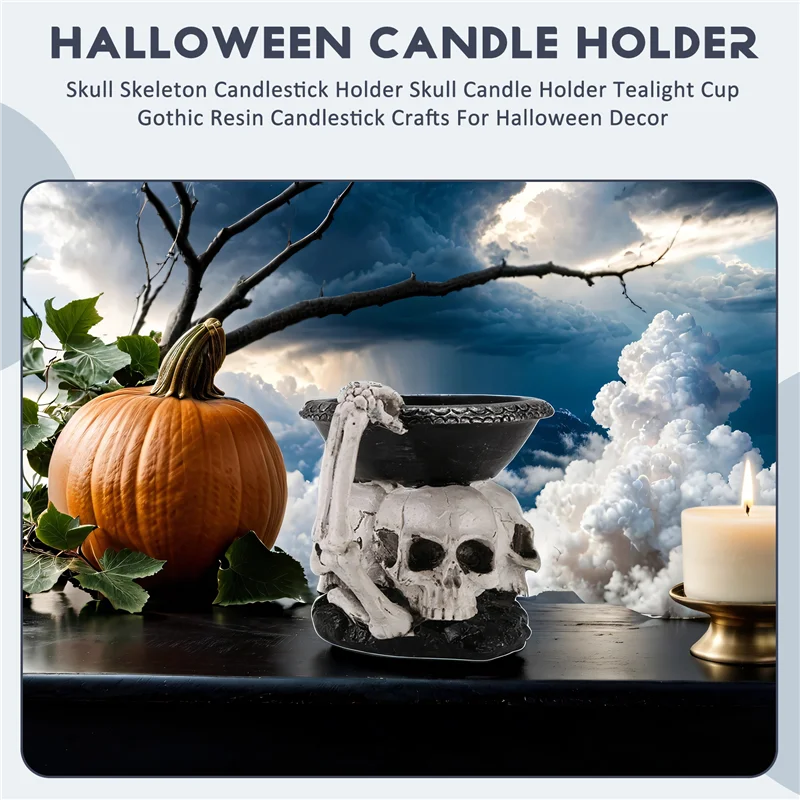 ABYP Skull Skeleton Candlestick Holder – Gothic Resin Tealight Candle Holder for Halloween Decor