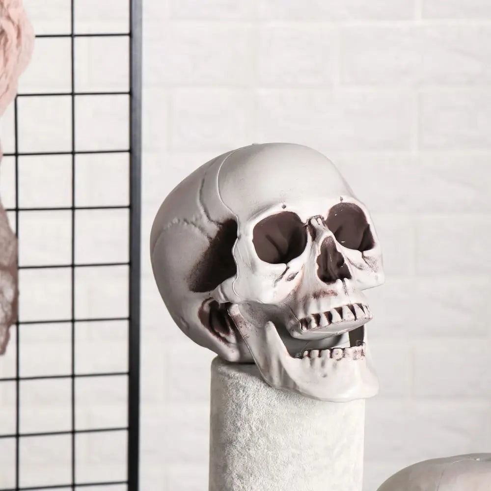 Enhance your Halloween or haunted event with this versatile Plastic Human Skull Head Skeleton — a must-have for serious spooky setups!