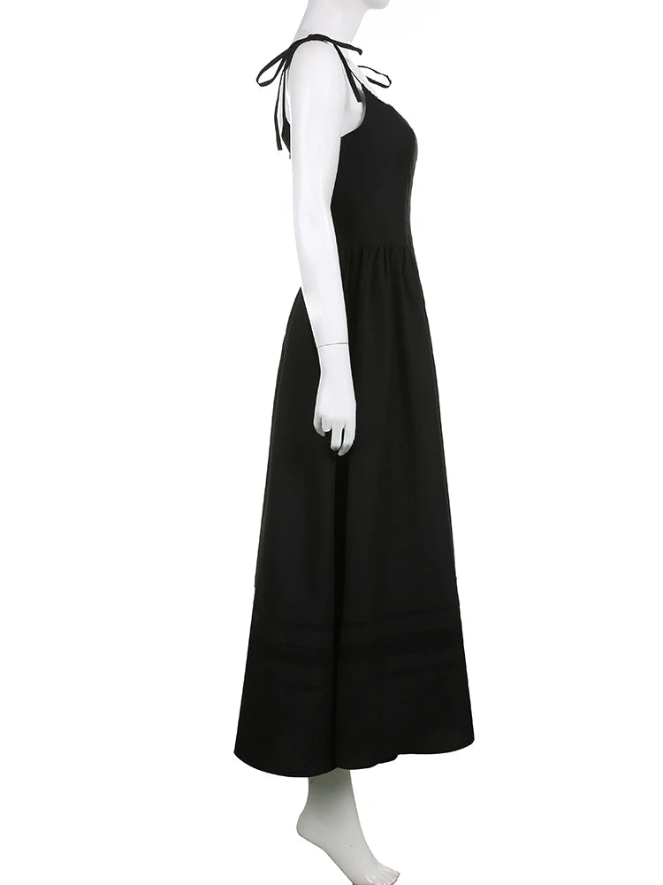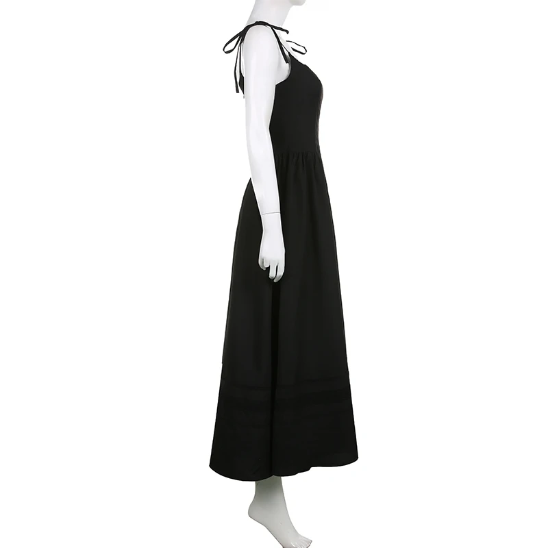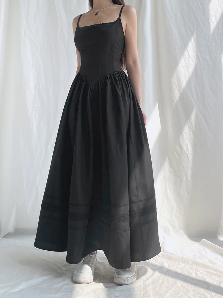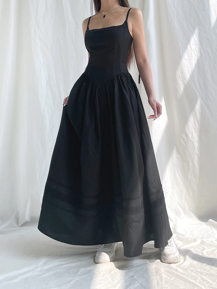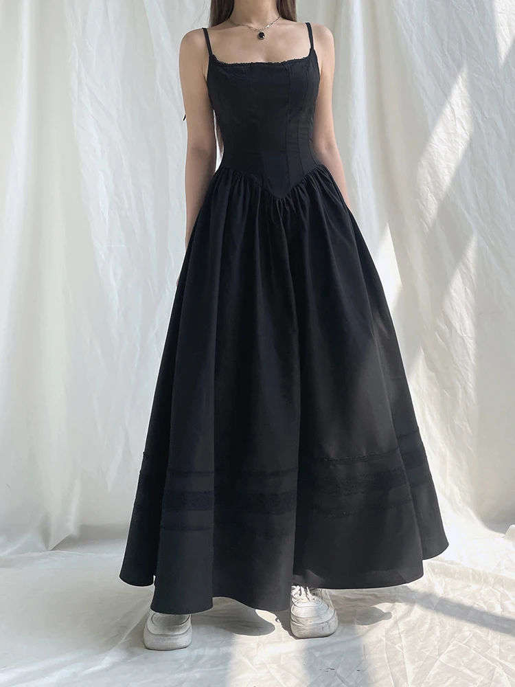 Darlingaga Gothic Grunge Corset Strap Long Dress – Summer Lace Patchwork Dark Academia Maxi Dress