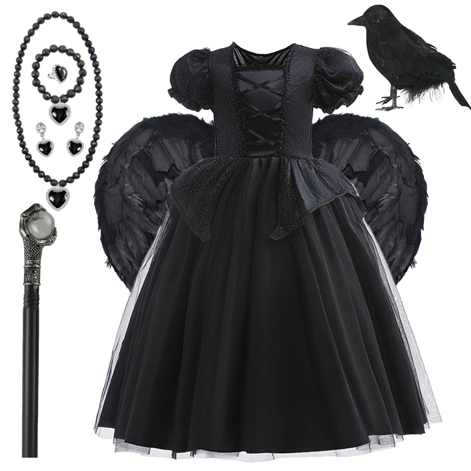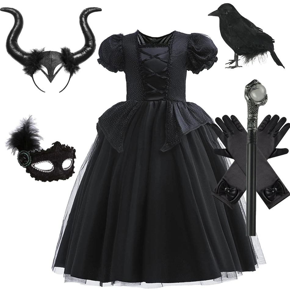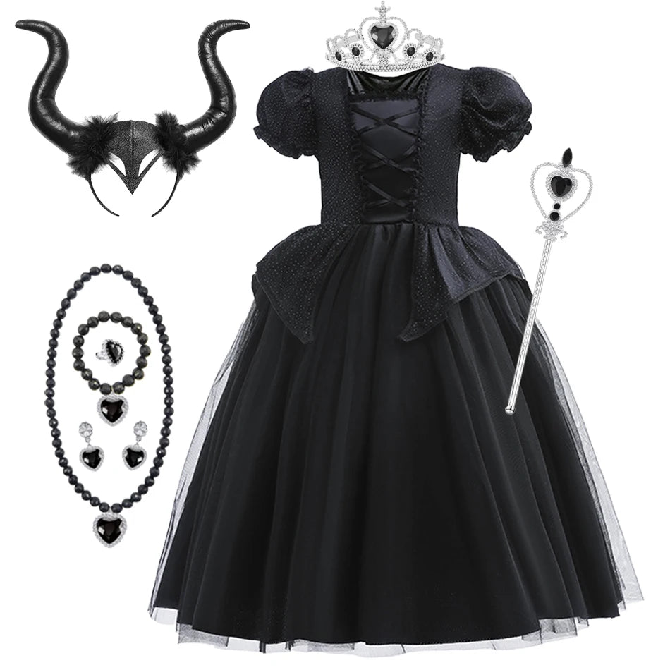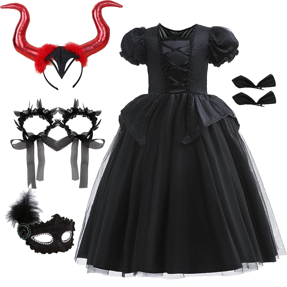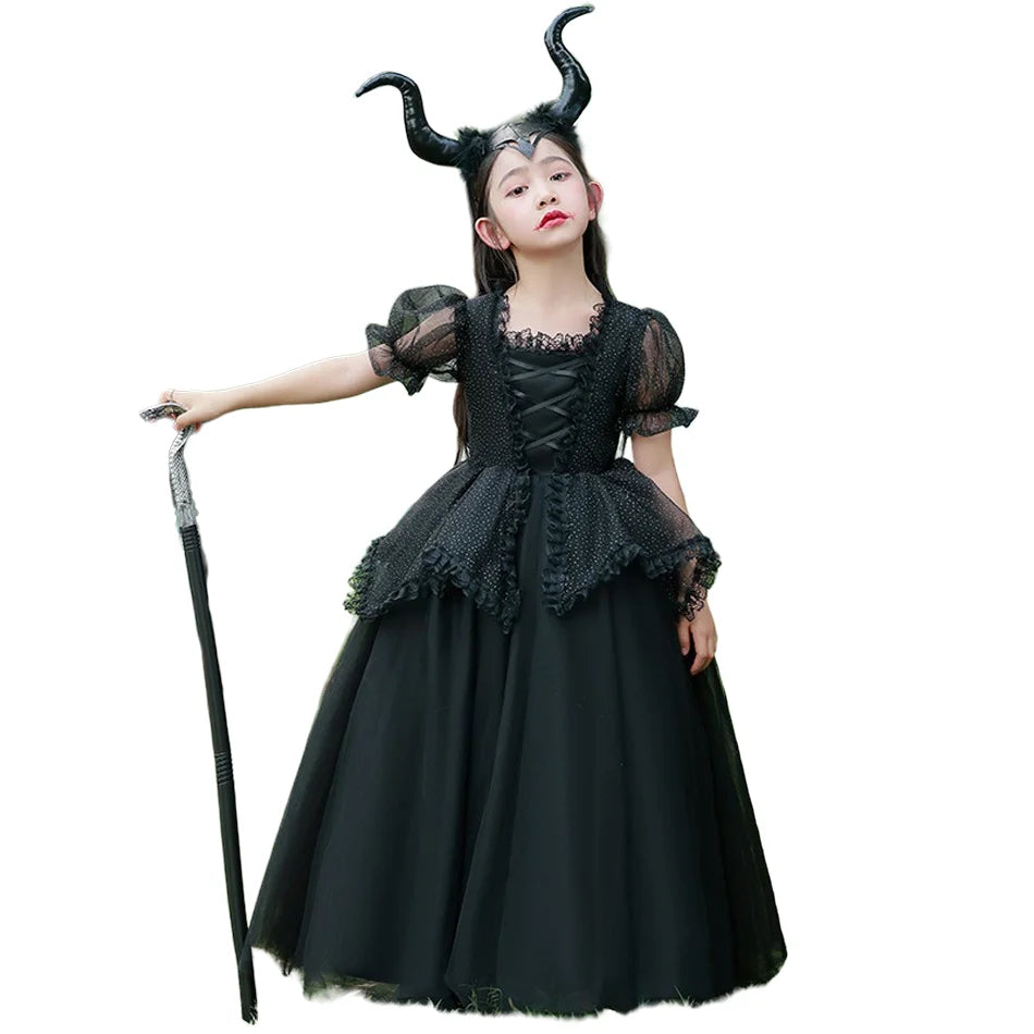 Girl Black Witch Cosplay Dress – Kids Halloween Carnival Evil Queen Costume