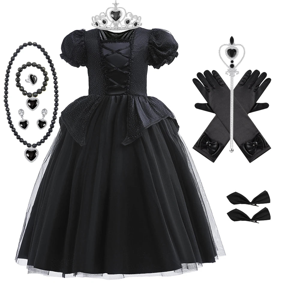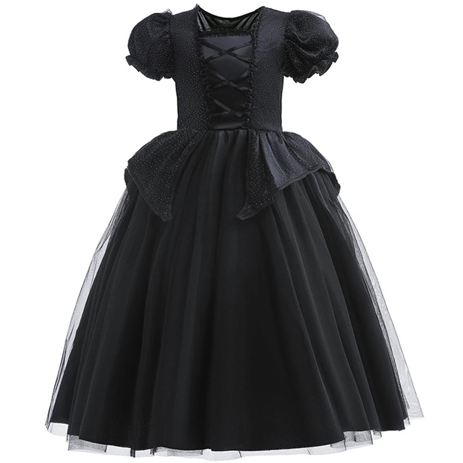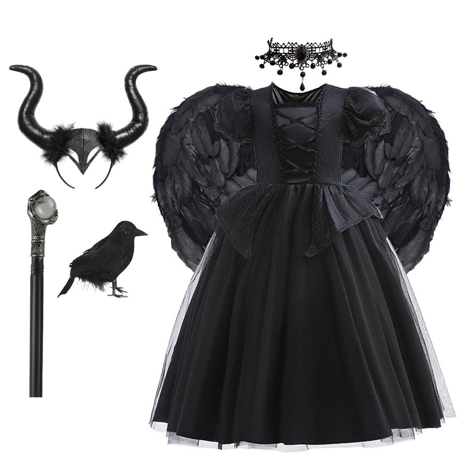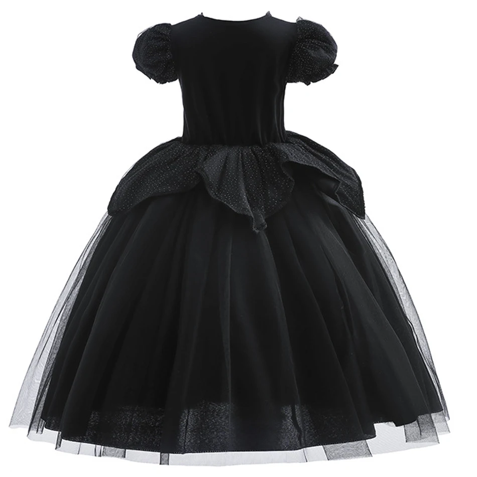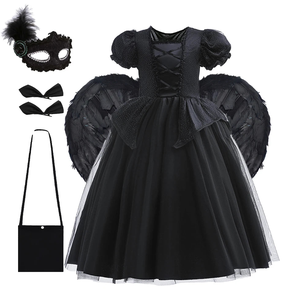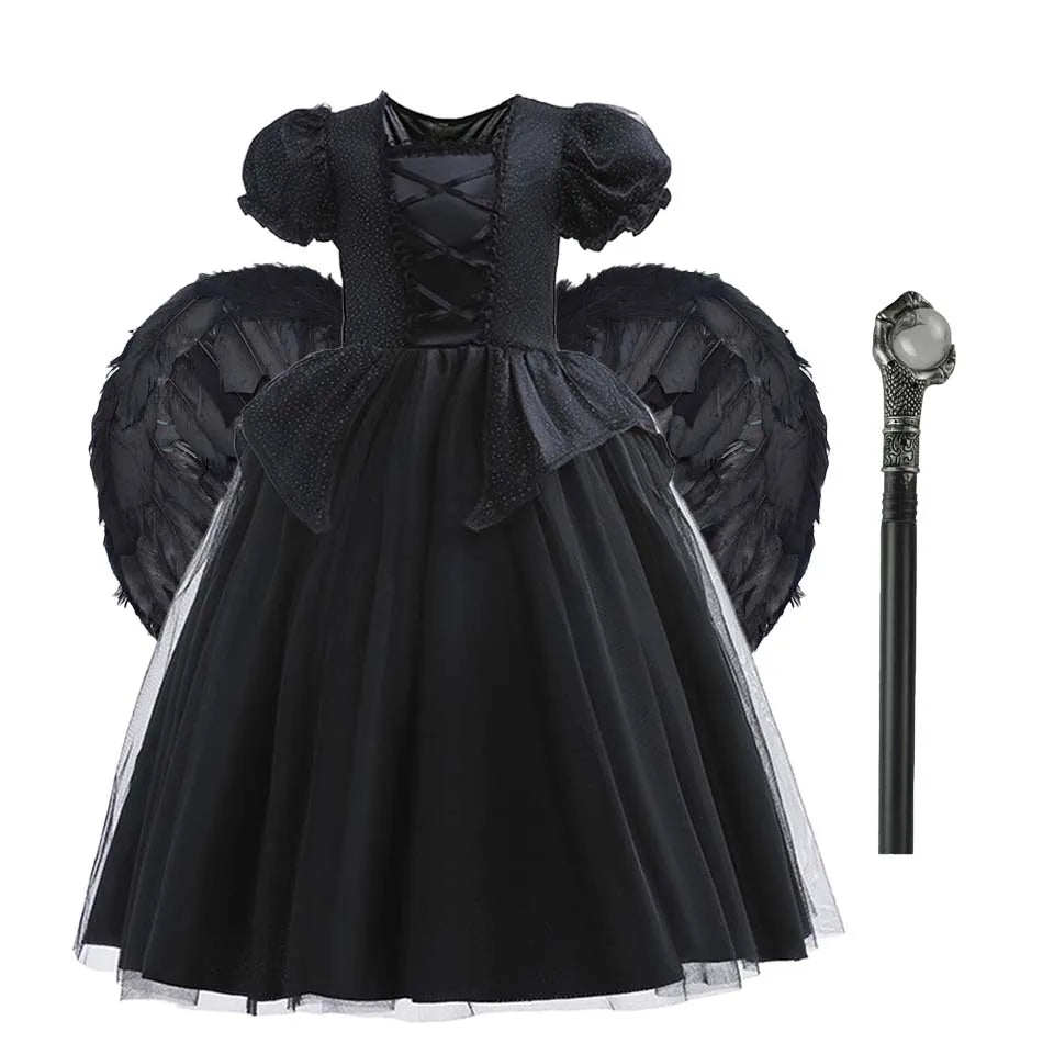Girl Black Witch Cosplay Dress – Kids Halloween Carnival Evil Queen Costume