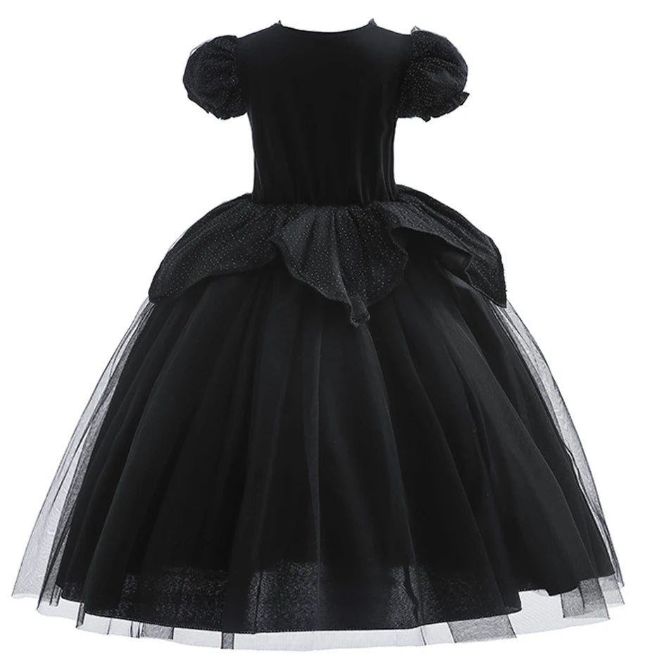 Transform your little one into a spooky enchantress with this Girl Black Witch Cosplay Dress — perfect for Halloween, birthday parties, carnivals, and dark-themed role play.