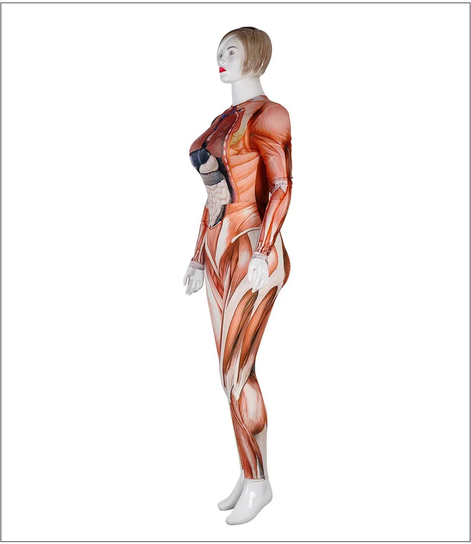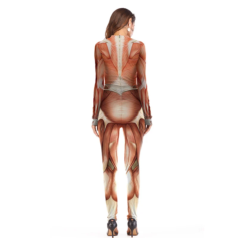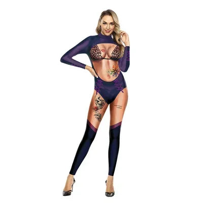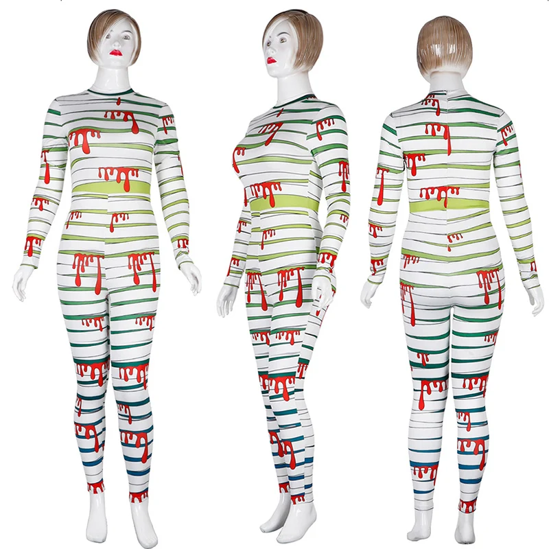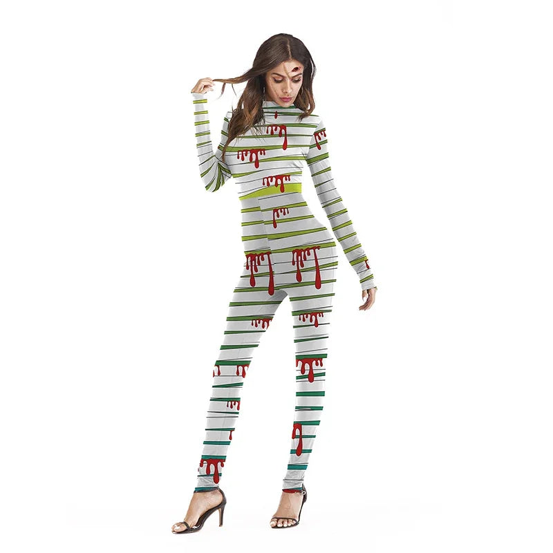 Halloween Costume Carnival Party Scary Skeleton Bone Bodysuit Jumpsuit – Adult Women Horror Bloody Catsuit