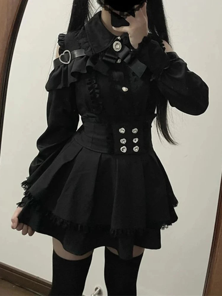 Elevate your style with a blend of nostalgia and trend — get your Japanese Lolita Dark Academia 2-Piece Set today and turn heads wherever you go!