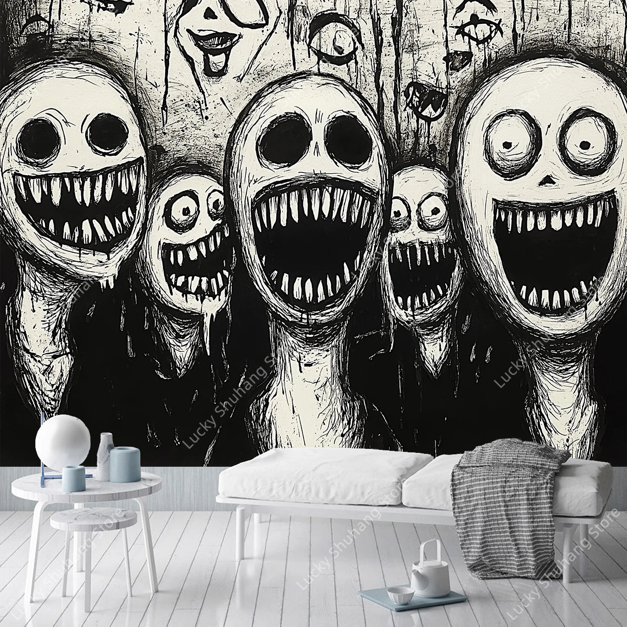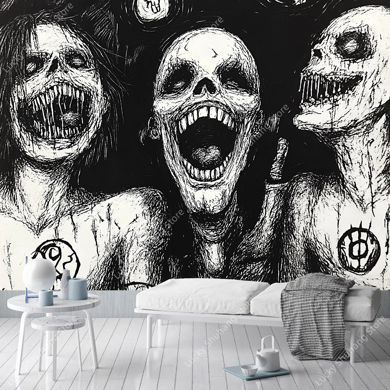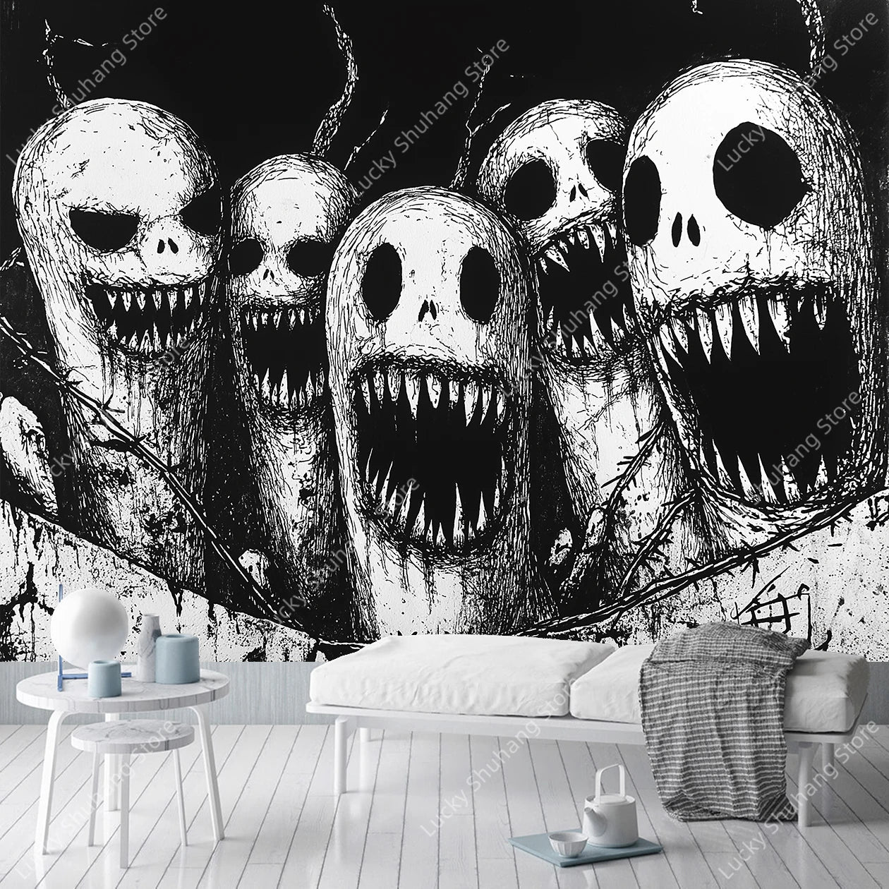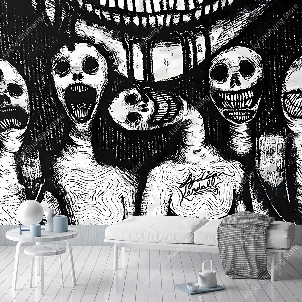 Ghost Skull Abstract Tapestry – Dark Gothic Wall Art for Bedroom & Living Room Decor