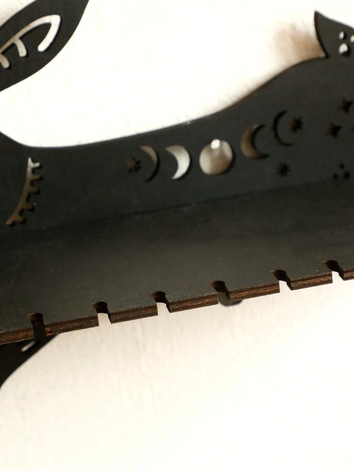 Add a touch of mystical charm to your space with this Gothic Black Running Rabbit Wall Shelf — a unique boho-inspired design featuring moon phases, perfect for crystals, small decor, and spiritual vibes.