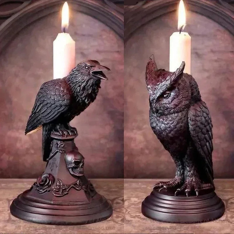 Bring a mysterious and whimsical vibe to your space with this Gothic Crow Candle Holder — a retro black owl candlestick sculpture perfect for Halloween or year-round gothic home décor.