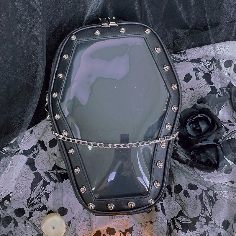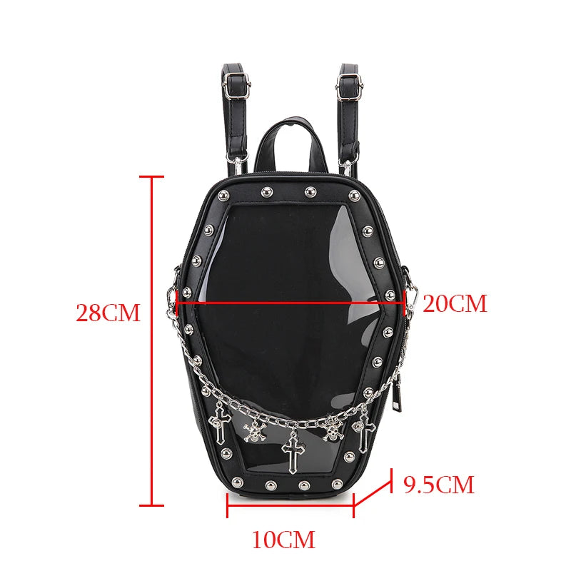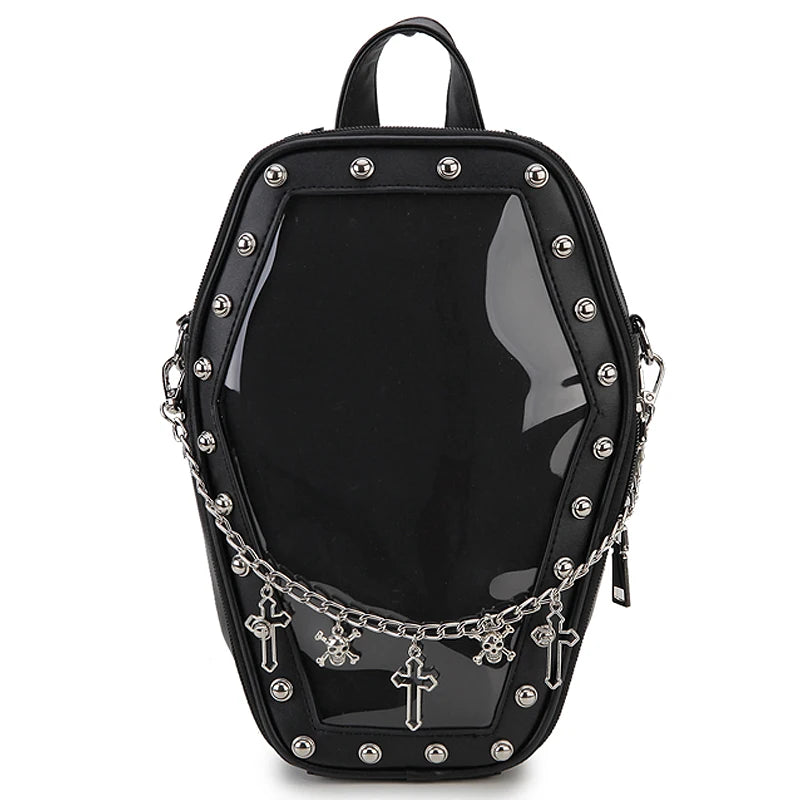 Gothic Punk Coffin-Shaped Ita Bag – Clear Backpack & Shoulder Bag for Women