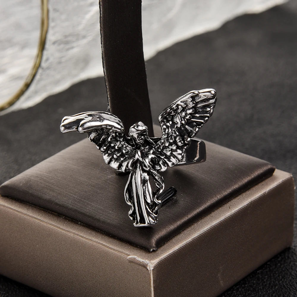 Express your dark romantic side with this Gothic Vintage Distressed Angel Ring — featuring an ancient silver finish and bold punk style. A perfect accessory for hip hop, alternative fashion, or as a meaningful couple ring.