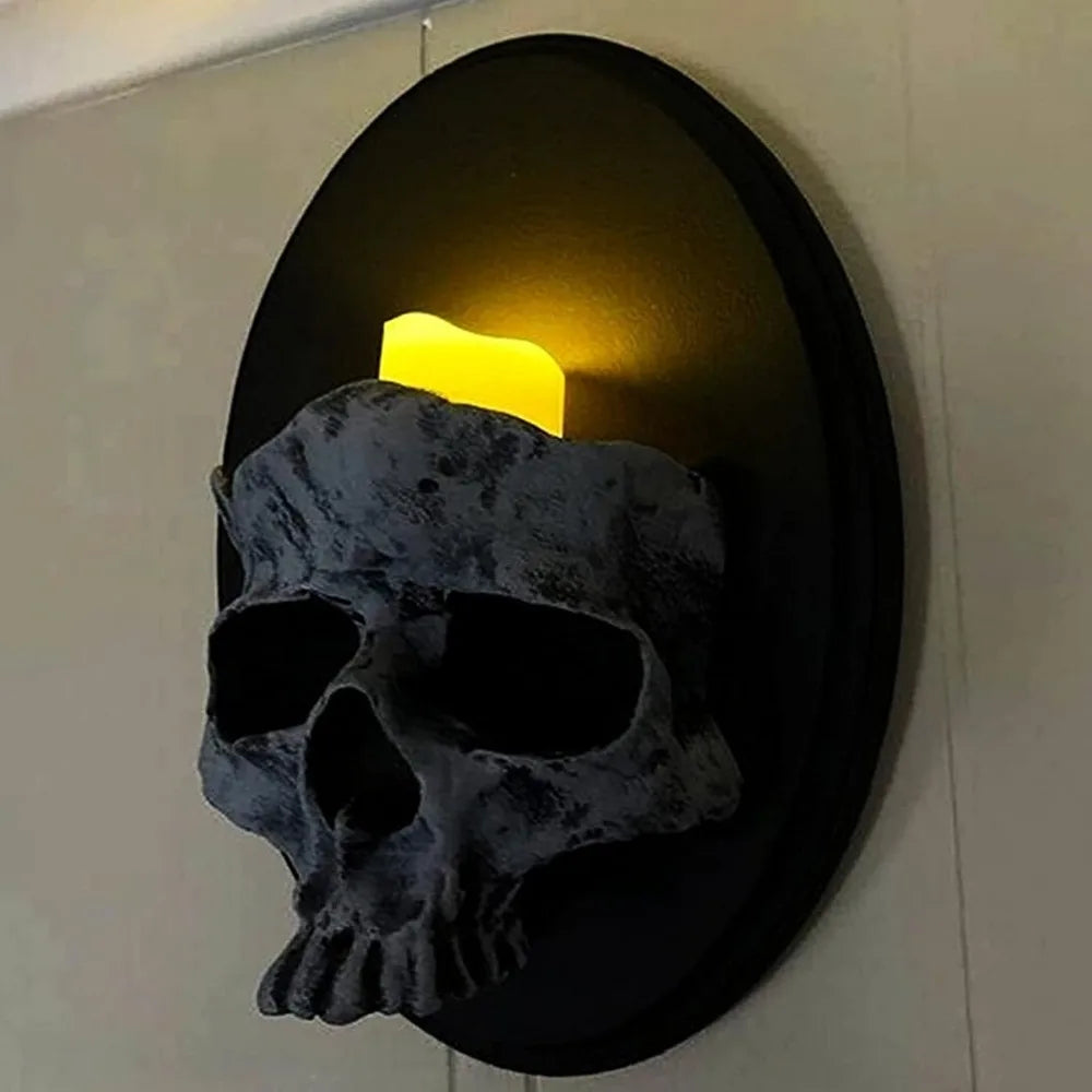 Turn your wall into a shrine of shadows — light up your spooky season with this Skull Head Candle Holder!