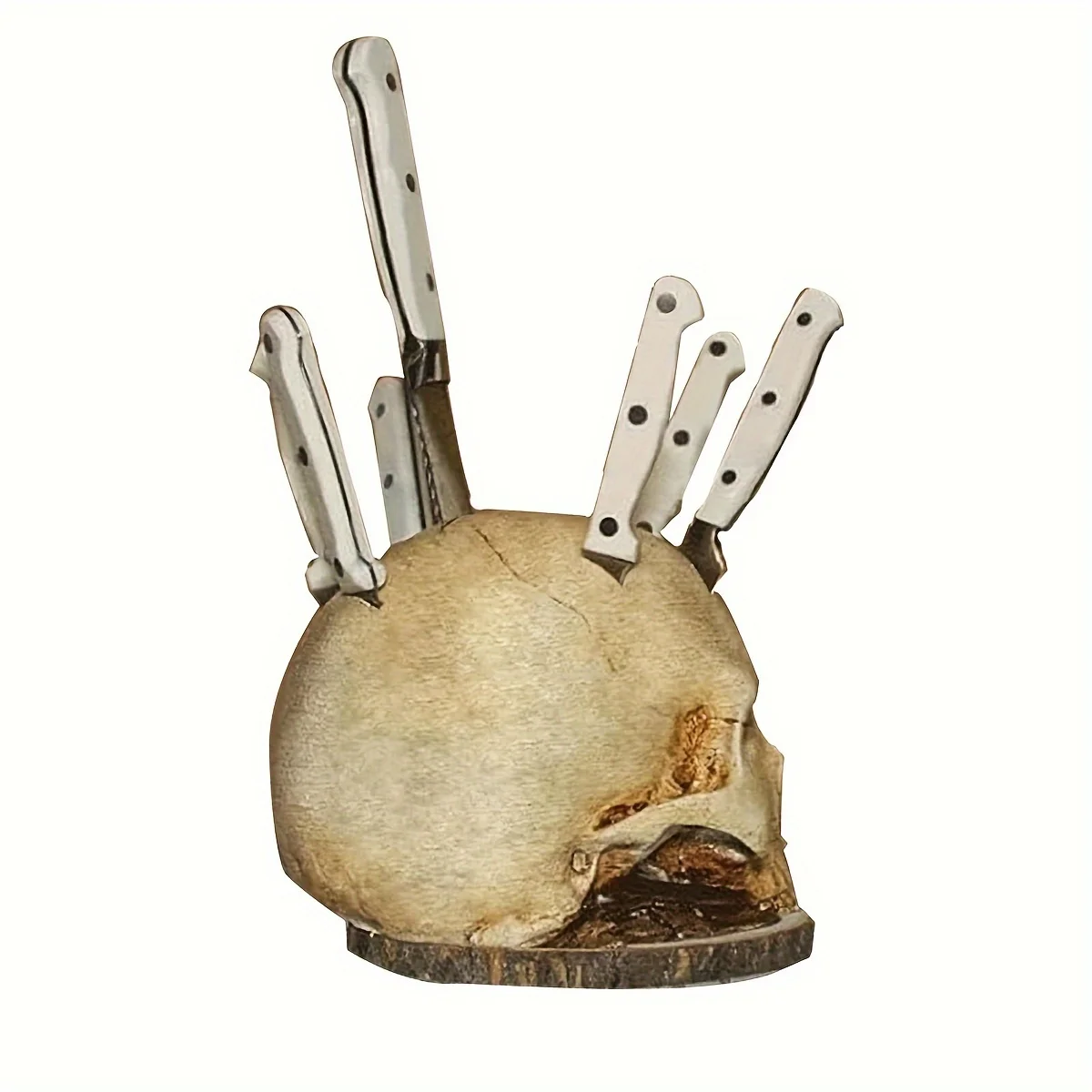 Kitchen Skeleton Knife Holder – Skull Resin Decoration for Horror-Themed Kitchen