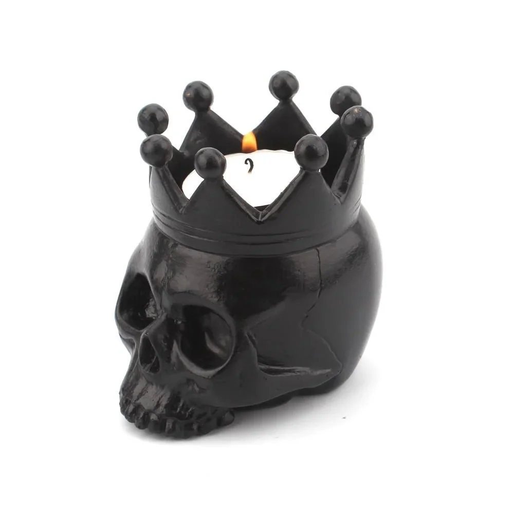 Add a regal spooky touch to your Halloween setup with this 3D Crown Skull Candle Holder — order now and light up your celebrations in style!