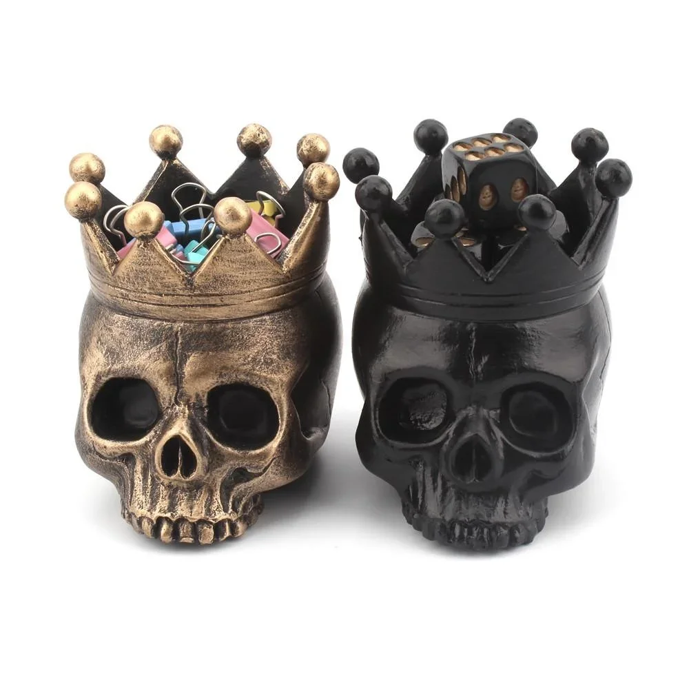 Elevate your Halloween décor with this New 3D Halloween Crown Skull Candle Holder. Featuring a detailed resin skull with a crown, it serves as a striking skeleton candle base perfect for spooky home decorations.