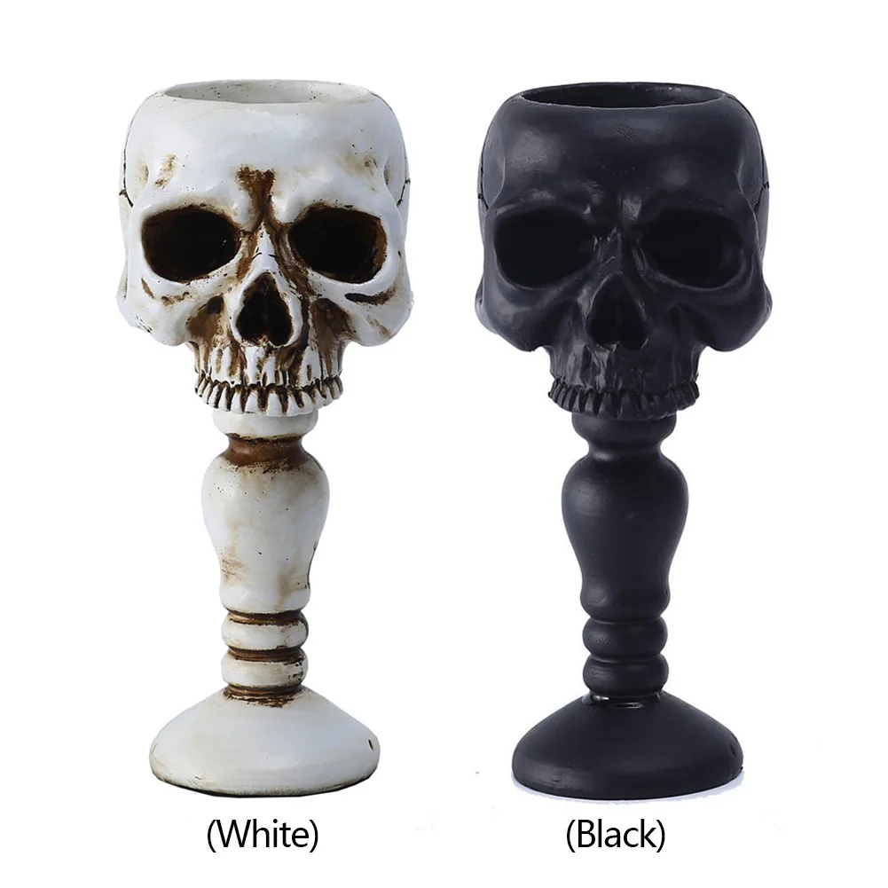Pillar Candlestick Holder Gothic Skull Tealight Holder Resin Candlestick Table Decor Ornament for Halloween Decorations