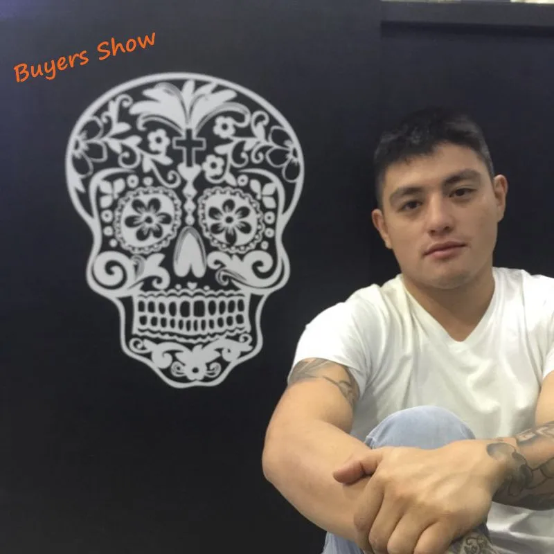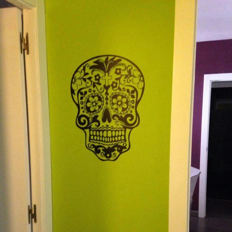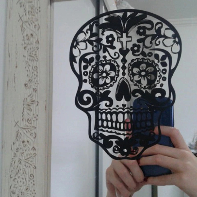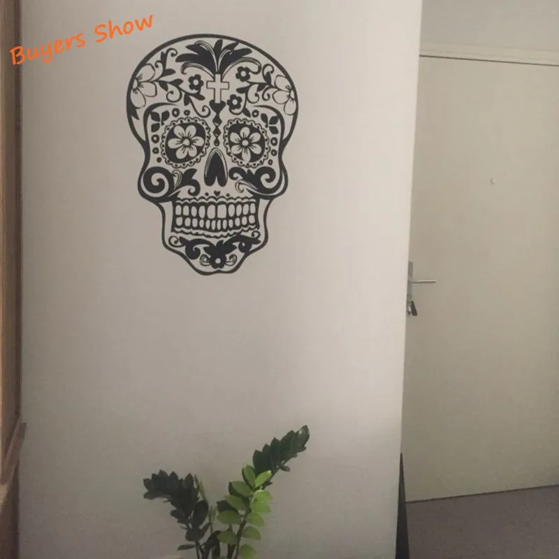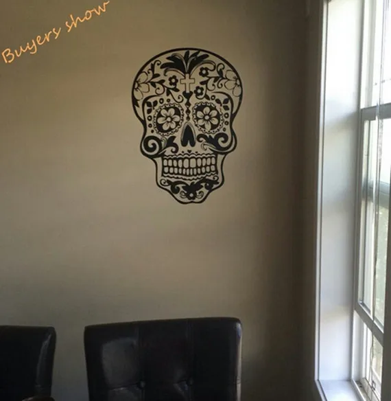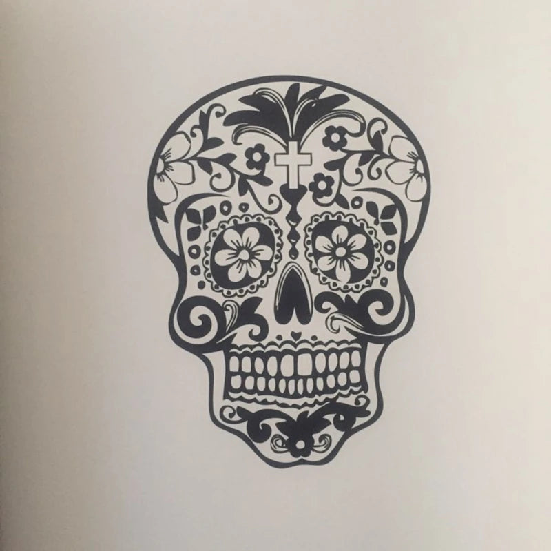 Express your edgy style with this Skull Punk Rock Vinyl Wall Sticker featuring a bold sugar skull design — perfect for adding personality and rebellious flair to any room or space!