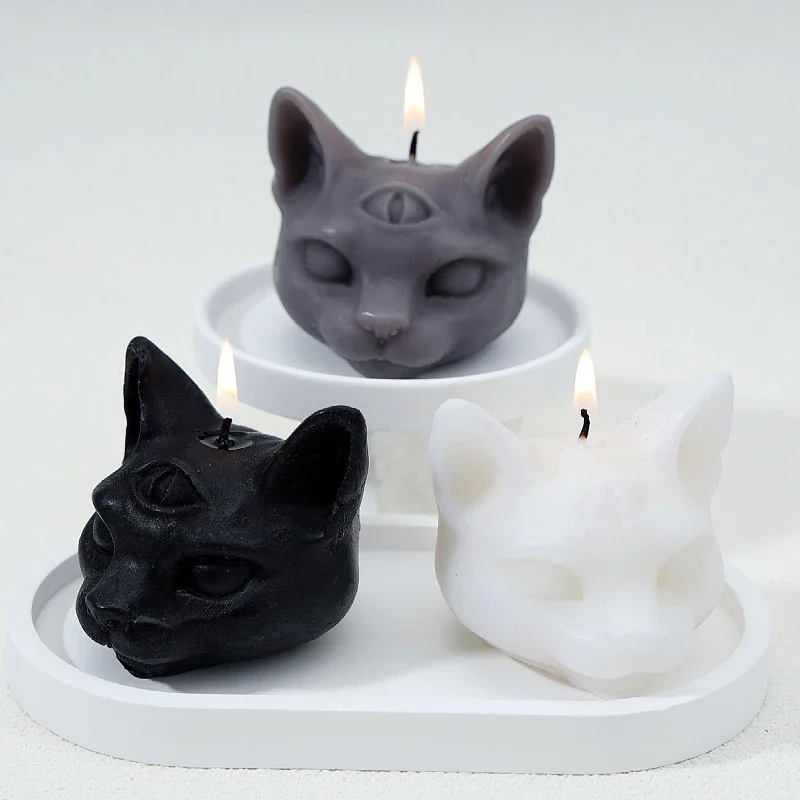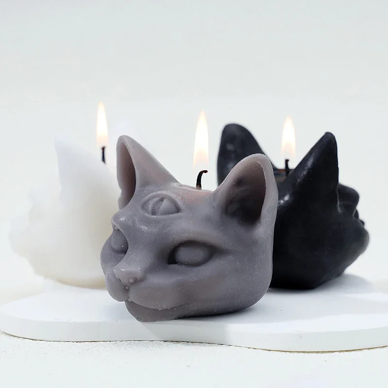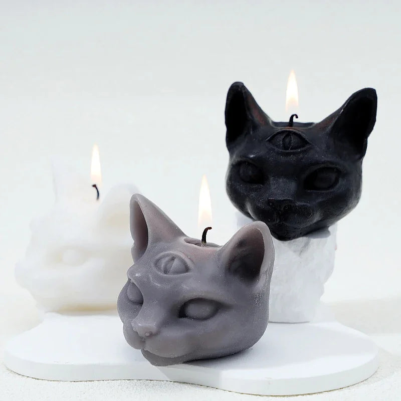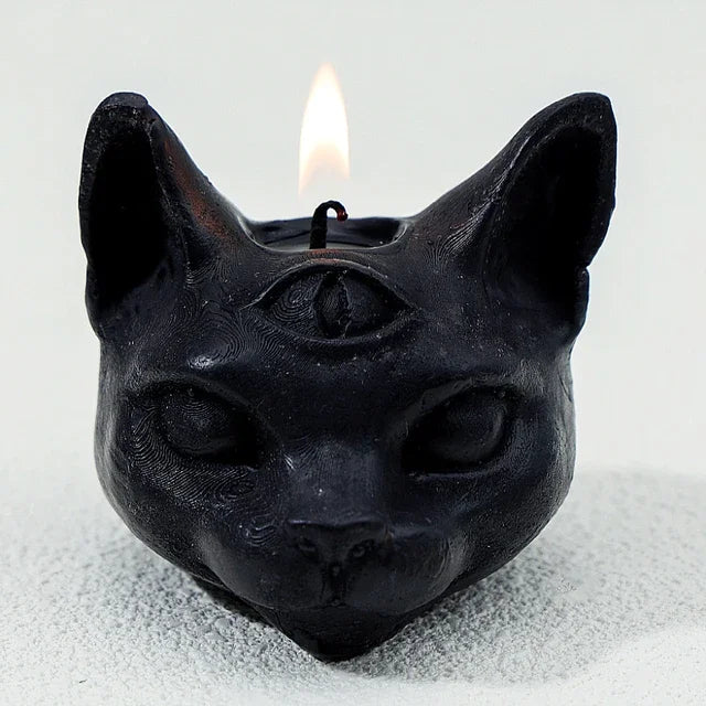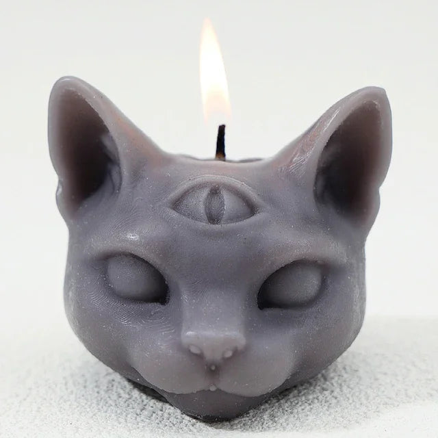 • Intricately crafted cat-shaped candles featuring three eyes for an eerie effect