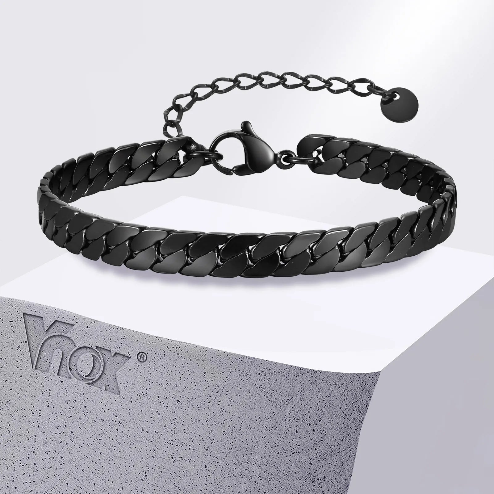 Add bold sophistication to your wrist — get your Vnox Gothic Black Cuban Chain Bracelet today!
