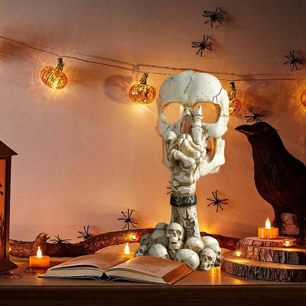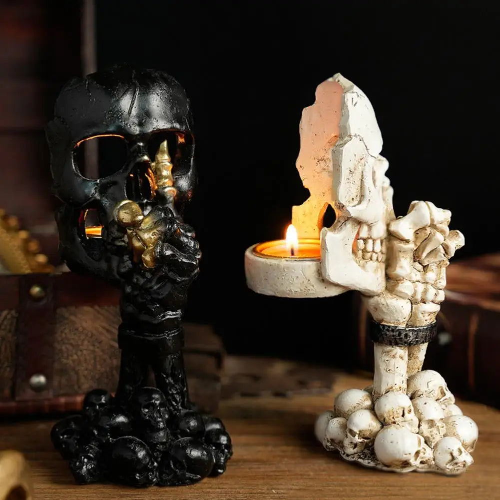 Set the scene for a hauntingly elegant Halloween with this gothic skeleton candlestick — a resin-crafted centerpiece perfect for scented tea lights and spooky table displays.