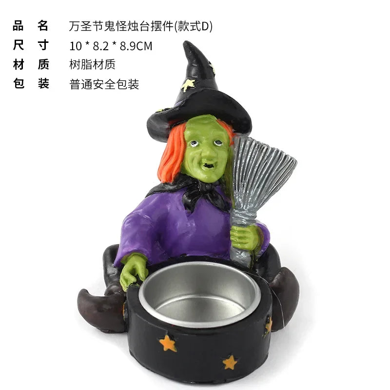 Gothic Witch Skeleton Resin Candlestick Holder — perfect for adding eerie charm to your home or Halloween party!