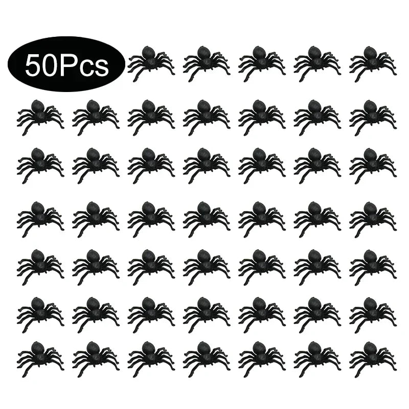 Includes 50 or 100 small black spiders, perfect for spreading creepy vibes