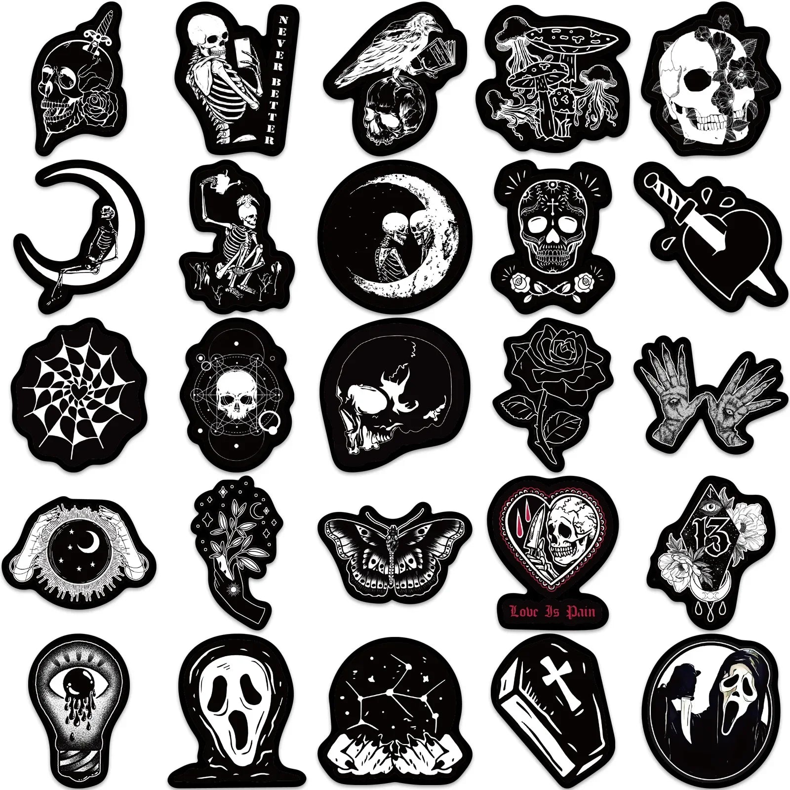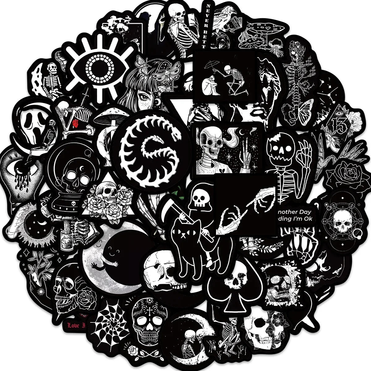 50PCS Black & White Gothic Graffiti Stickers – Skull & Dark Art Decals for DIY, Motorcycle, Laptop, Phone, Helmet & More