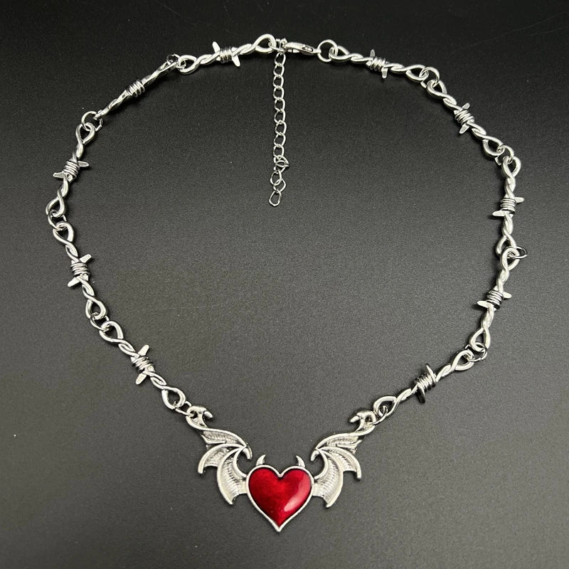 Aesthetic Goth Devil Heart Barbed Wire Choker Necklace – Punk Hip Hop Y2K Vampire Jewelry
