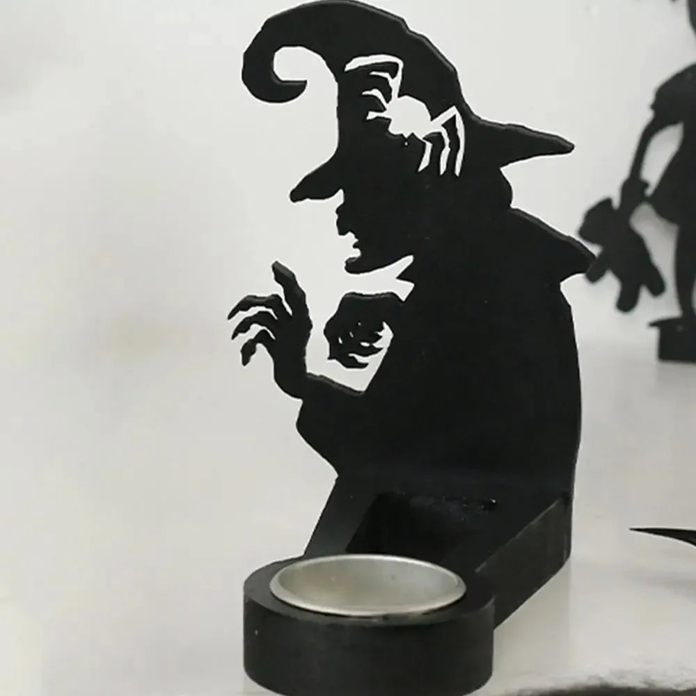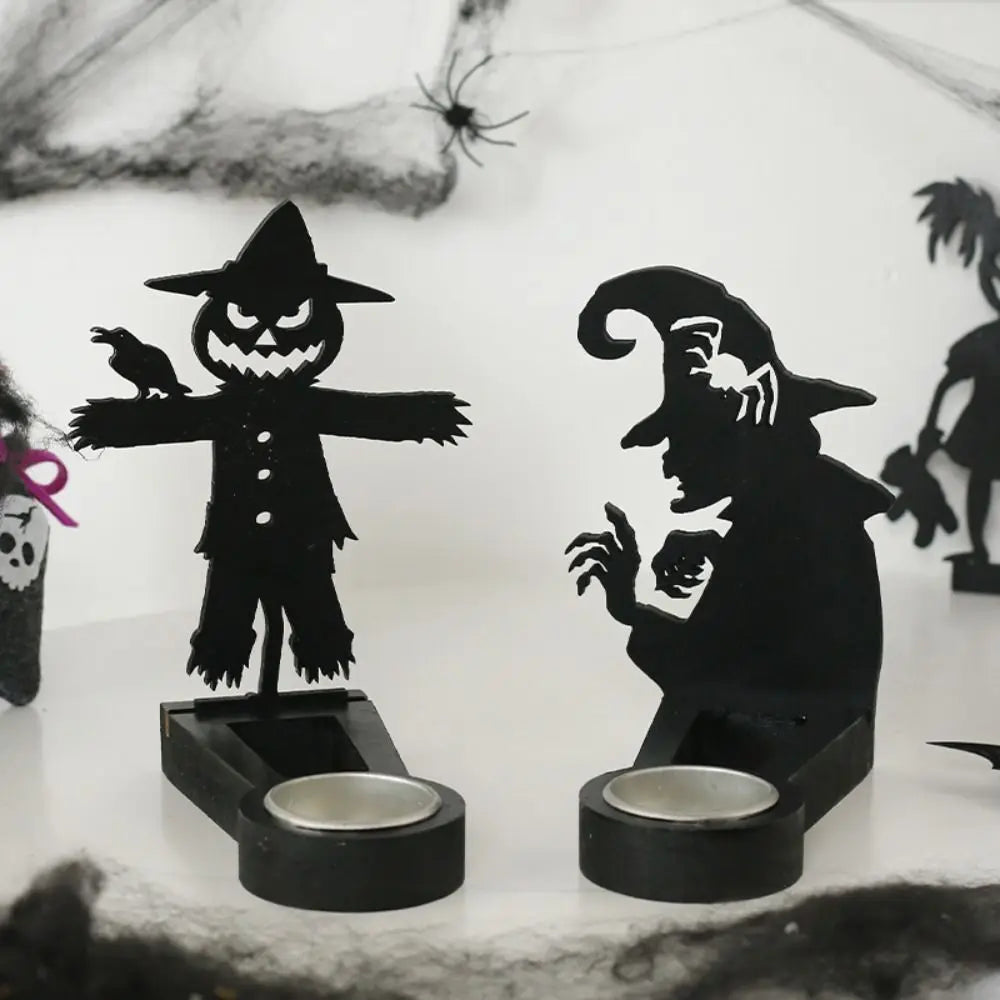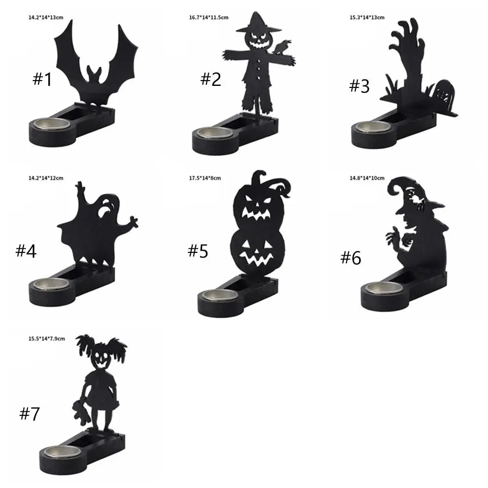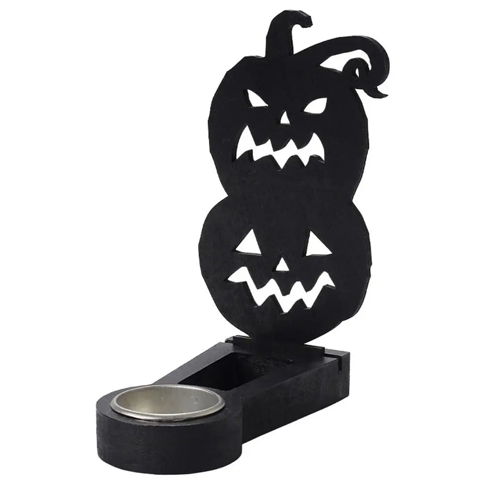 Create spooky shadow scenes with this Black Halloween Candlestick Holder — featuring pumpkin and bat designs that cast eerie silhouettes when lit. Handmade and perfect for adding fun, creepy ambiance to your Halloween celebrations.
