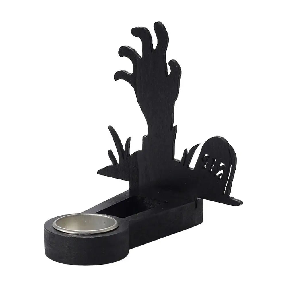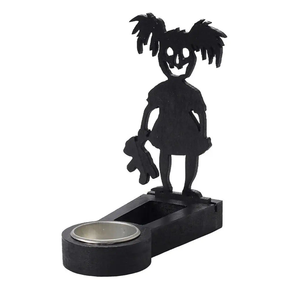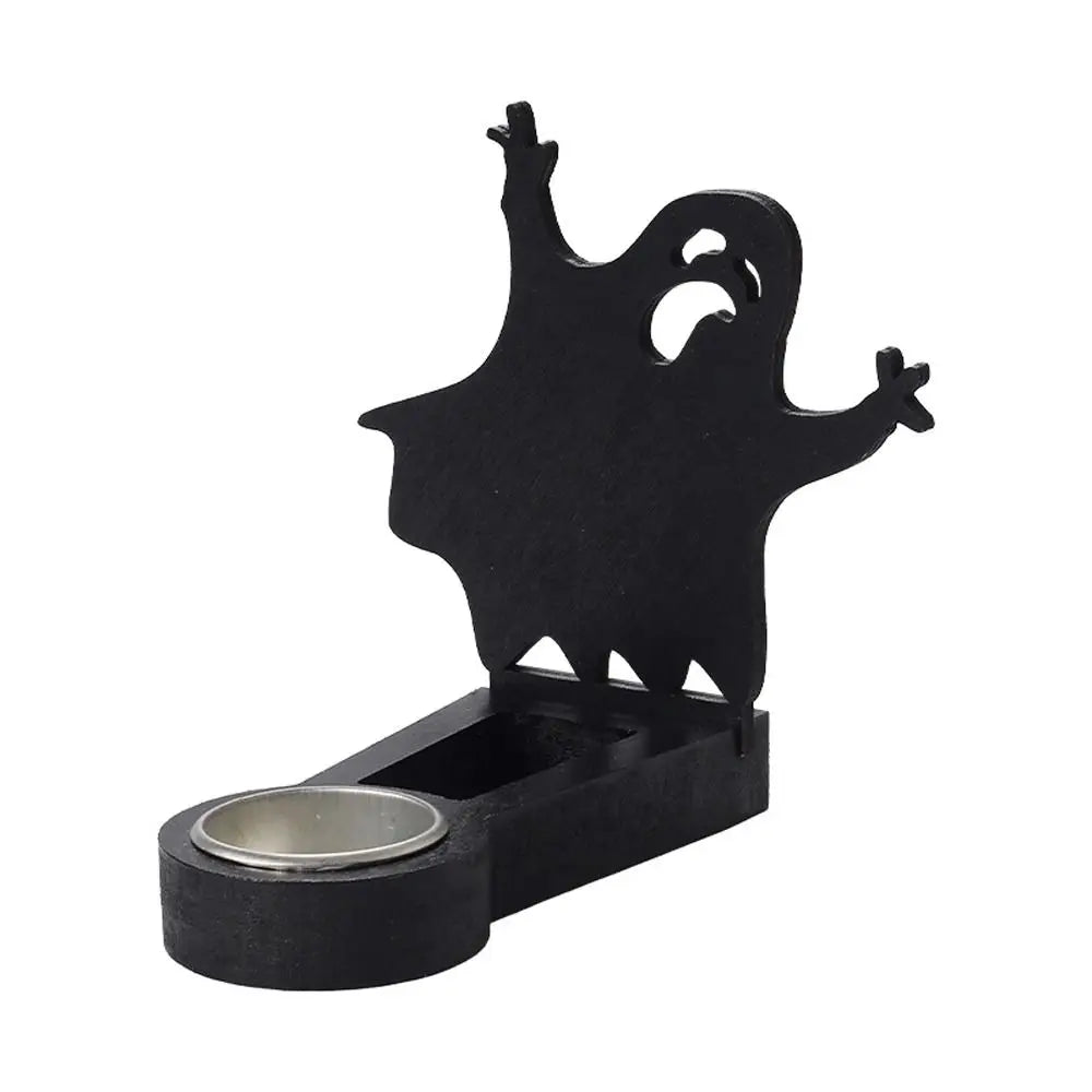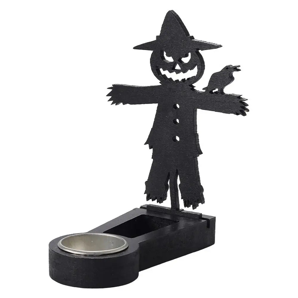 Create spooky shadow scenes with this Black Halloween Candlestick Holder — featuring pumpkin and bat designs that cast eerie silhouettes when lit. Handmade and perfect for adding fun, creepy ambiance to your Halloween celebrations.