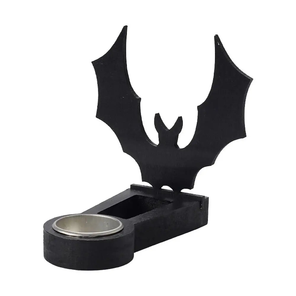 Black Halloween Candlestick Holder – Pumpkin & Bat Shadow Caster Handmade Candle Stand