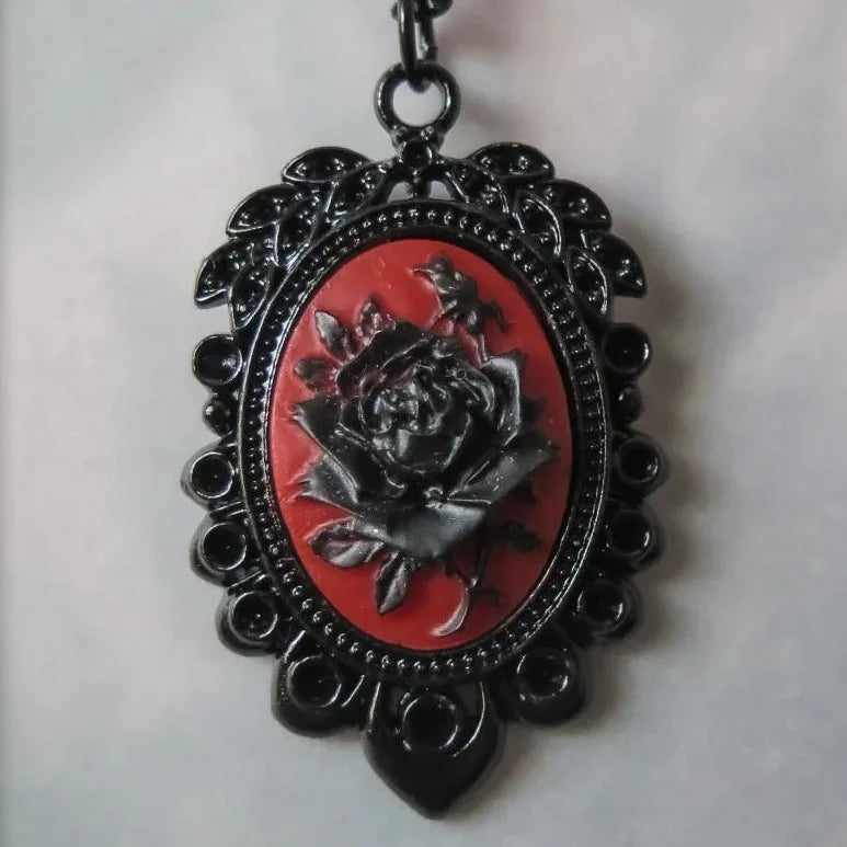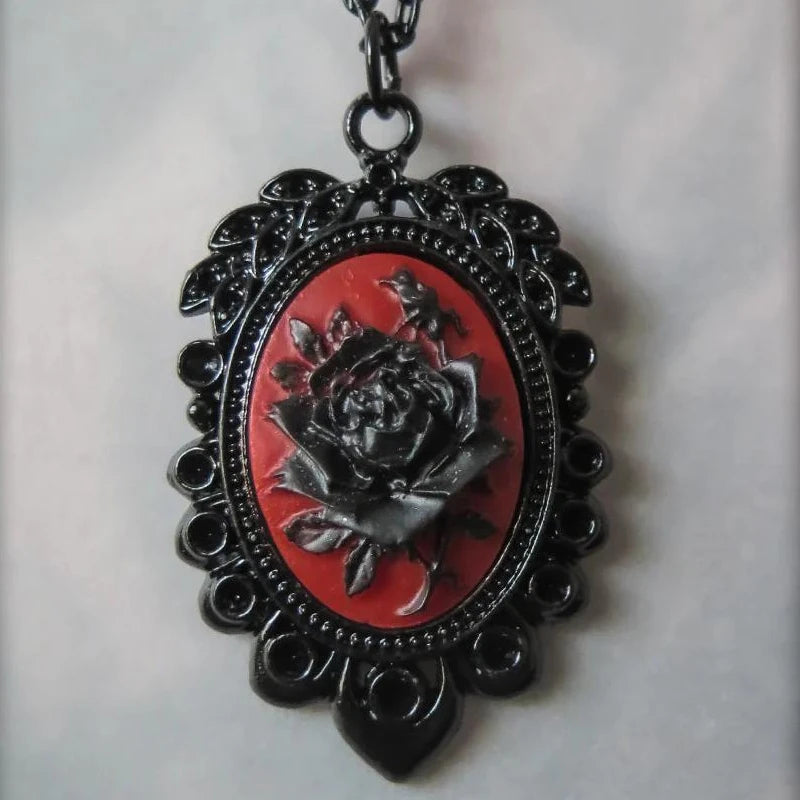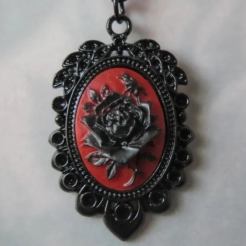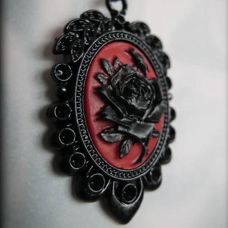 Black Rose Cameo Necklace – Gothic Vintage Pendant Choker for Women & Men