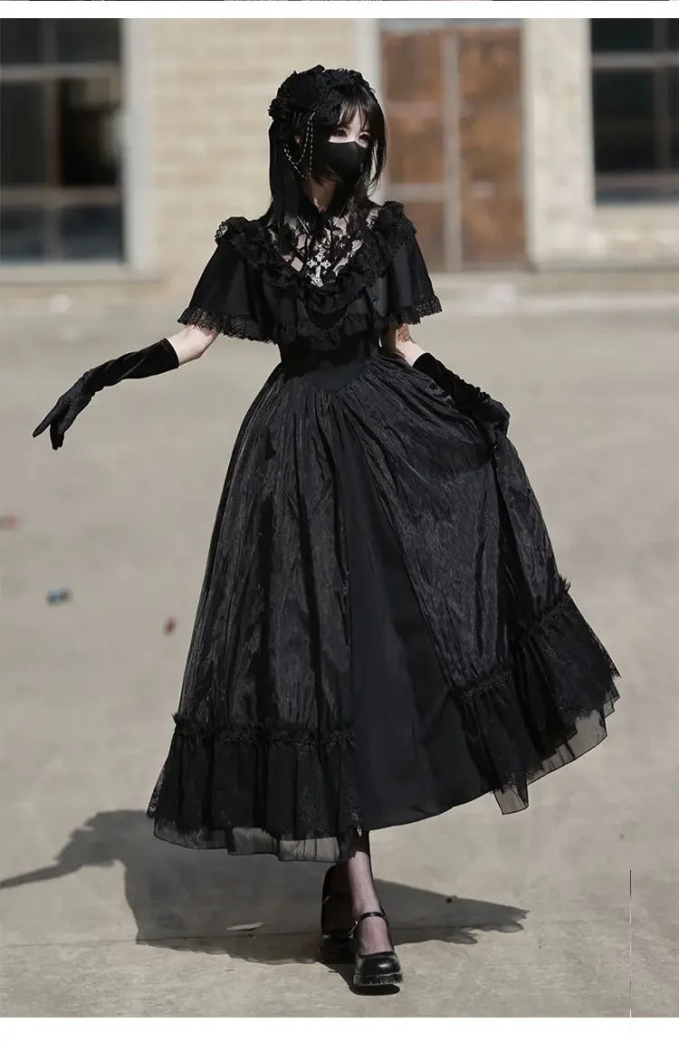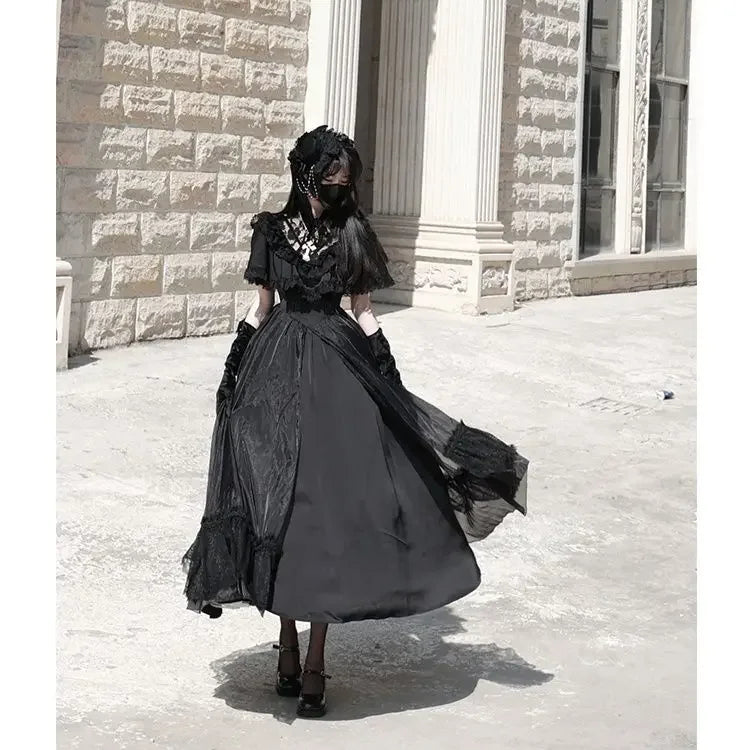 Step into vintage gothic royalty — get your Coalfell French Retro Lace Collar Princess Dress today and embody classic Lolita elegance!