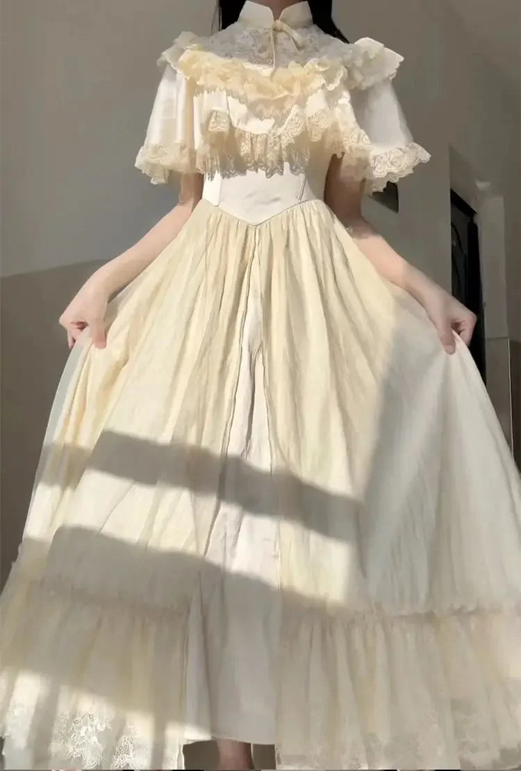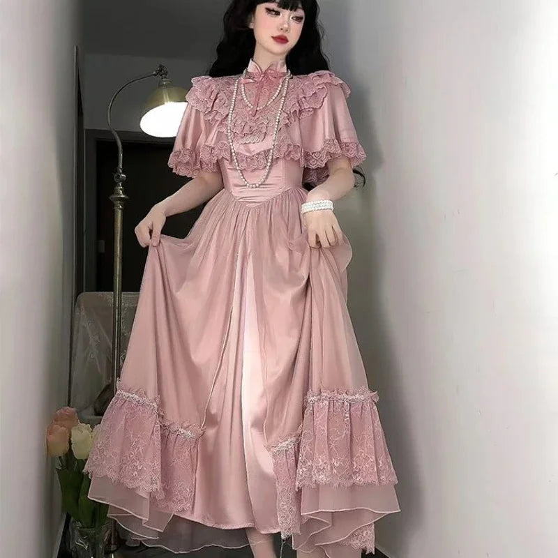 Channel timeless elegance with the Coalfell French Retro Lace Collar Princess Dress — a Lolita-inspired gothic courtly style featuring vintage lace details, perfect for sophisticated women seeking classic charm.