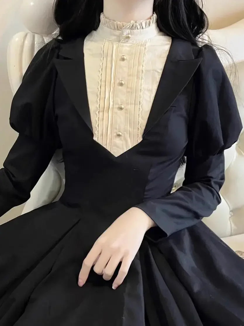 Embrace timeless elegance with the Coalfell Vintage Gothic Black Lolita Dress — a slim-fit, long-sleeved masterpiece featuring a voluminous large hem and puffy silhouette, perfect for autumn and sophisticated gothic style lovers.