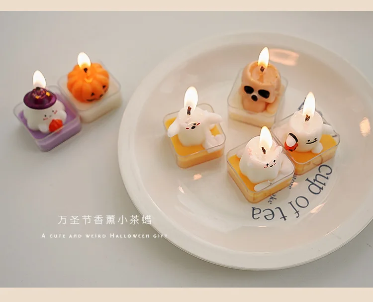 Illuminate your space with this Creative Handmade Halloween Ghost Candle — a beautifully crafted soy wax aromatherapy candle perfect as a spooky photo prop or unique home decoration.