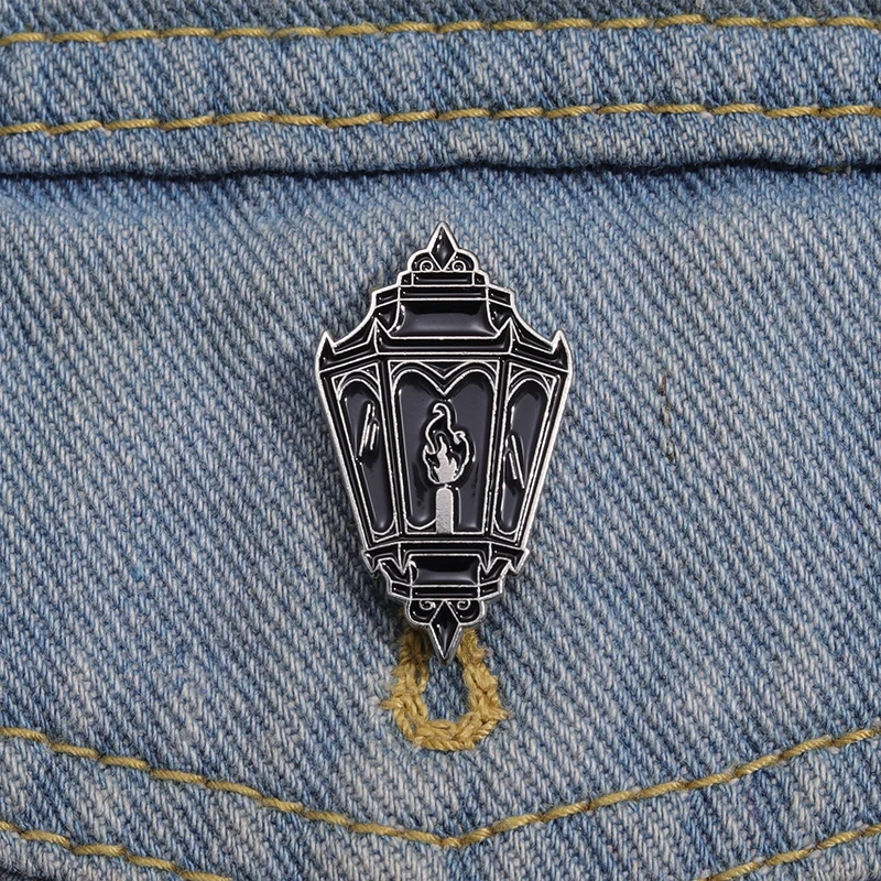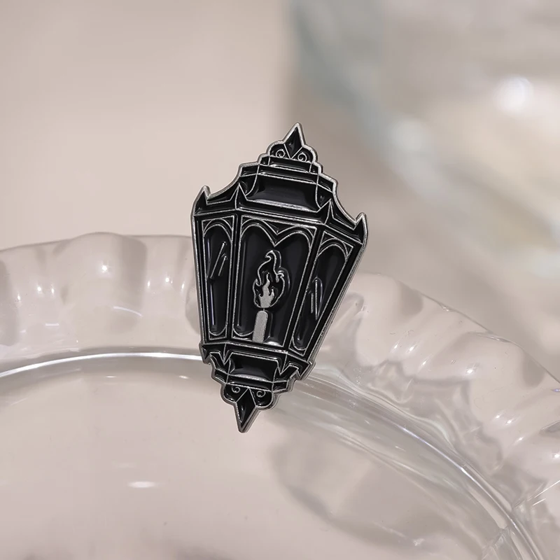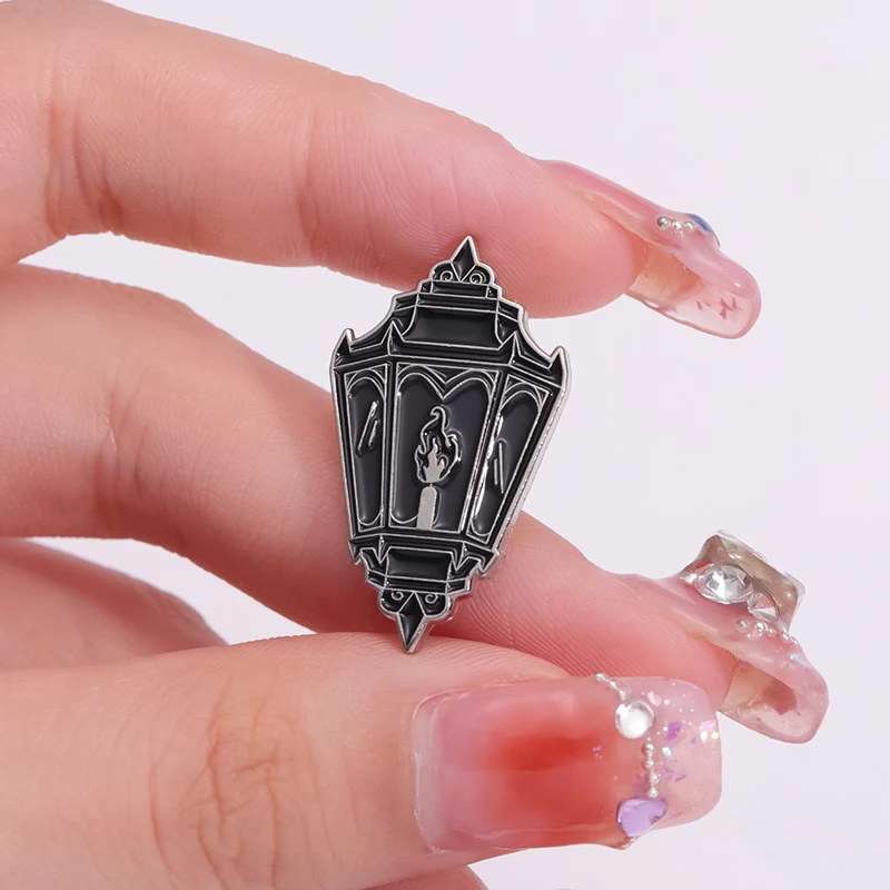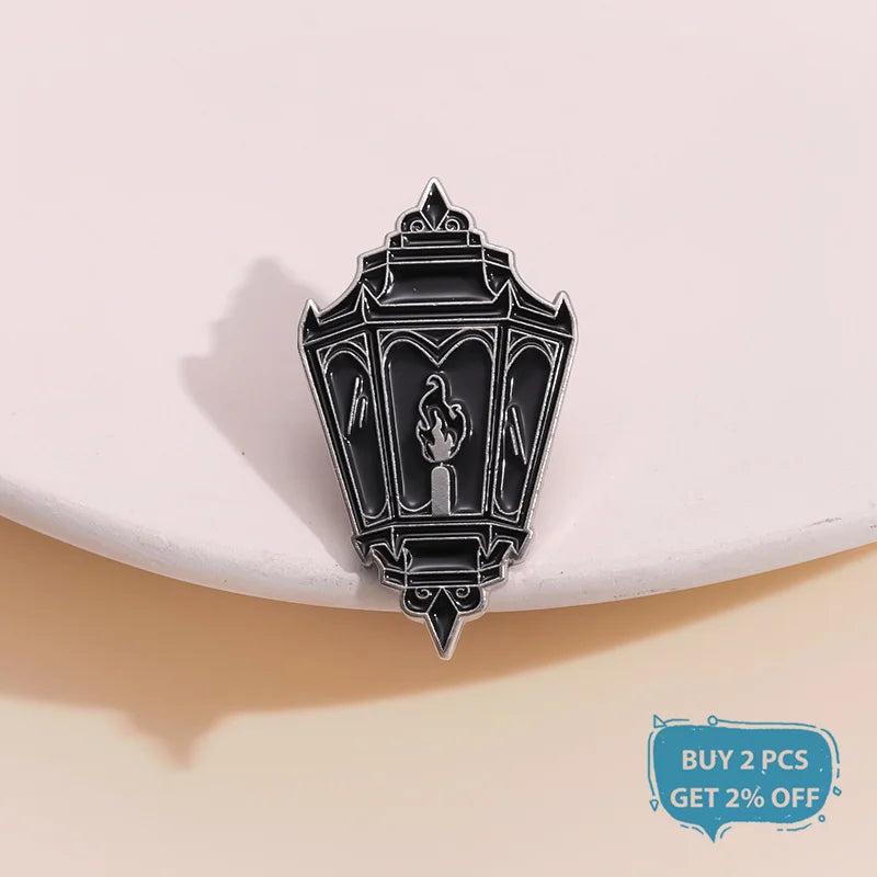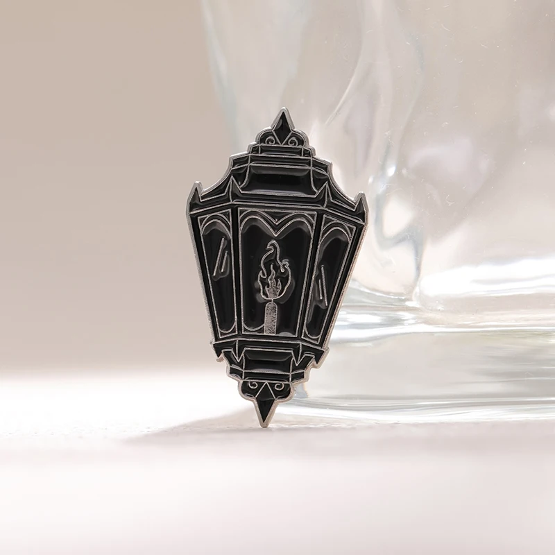 Add a flicker of gothic flair to your outfit — grab the Black Fire Lantern Enamel Pin today!