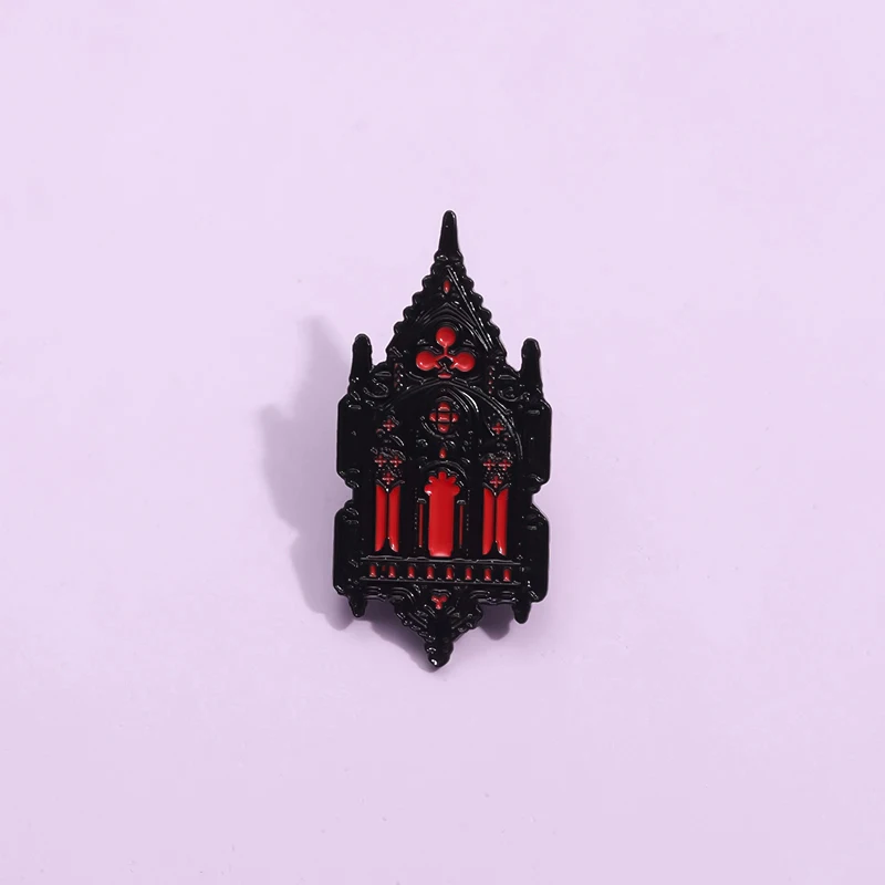 Great as a Halloween party favor, goth fashion statement, or gift for pin collectors